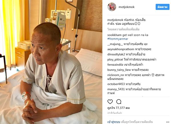 ทำแฟนคลับเป็นห่วงอีกครั้ง เมื่อตลกดัง “หม่ำ จ๊กมก” ป่วยจนต้องเข้าโรงพยาบาล เนื่องจากมีอาการท้องร่วง โดย “มด เอ็นดู” ภรรยาได้โพสต์ภาพ หม่ำขณะแอดมิทที่โรงพยาบาล พร้อมบอกว่า “ท้องร่วง. ท้องเสีย. กำลัง. ซ่อม อยู่ครับ” โดยมีแฟนคลับเข้ามาให้กำลังใจจำนวนมาก