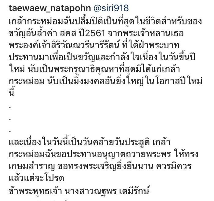 ทำเอาปลื้มปีติและมีกำลังใจในการทำงานอย่างมากมายสำหรับ ‘แต้ว ณฐพร’ที่ล่าสุด พระเจ้าหลานเธอพระองค์เจ้าสิริวัณณวรีนารีรัตน์ประทาน ส.ค.ส. ปี 2561 เพื่อเป็นขวัญและกำลังใจเนื่องในโอกาสวันขึ้นปีใหม่ที่ผ่านมา งานนี้นางเอกฮอตโพสต์ภาพความประทับใจดังกล่าวพร้อมแคปชั่นขอบพระทัยในพระกรุณาลงอินสตาแกรมส่วนตัวให้แฟนคลับได้รับรู้กัน อีกทั้งยังถวายพระพรเนื่องในวันคล้ายวันประสูติของพระองค์ 8 มกราคม ด้วยเรียกว่าเป็นเรื่องราวดีๆ รับศักราชใหม่ และเป็นกำลังใจให้สาวแต้วทำงานในแวดวงบันเทิงได้อย่างสดชื่นตั้งแต่ต้นปี