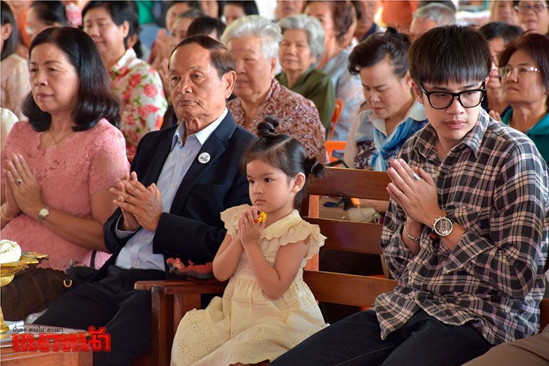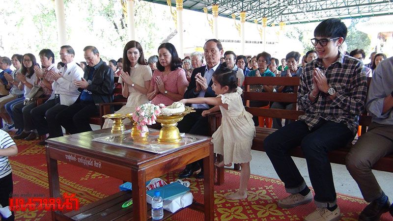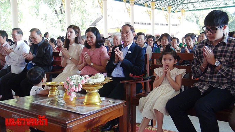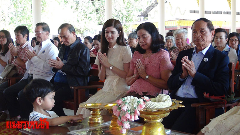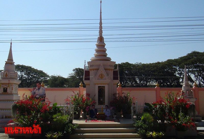 จากนั้นครอบครัวสหวงษ์ พร้อมด้วยโบว์ และน้องมะลิ ก็ได้เข้าไปจุดธูปไหว้อัฐิของปอ โดยรอบเจดีย์ได้มีการตกแต่งด้วยต้นปอแดง ที่ออกดอกบานสะพรั่ง และดอกไม้คล้ายสวนหย่อมขนาดย่อมอย่างสวยงาม รายล้อมด้วยภาพถ่ายของพระเอกหนุ่มในอิริยาบถต่างๆ ขณะที่ประชาชนและแฟนคลับที่มาร่วมงานทำบุญอุทิศส่วนกุศล ก็ได้นำดอกไม้ พวงมาลัย มากราบไหว้และถ่ายรูปกับเจดีย์ปอ อย่างต่อเนื่องด้วยเช่นกัน ซึ่งบรรยากาศก็เป็นไปด้วยความอบอุ่น