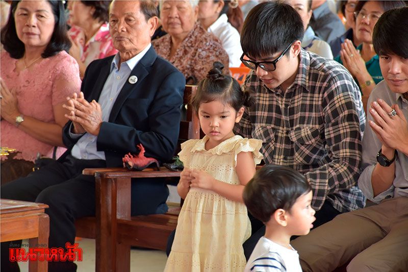 ขณะที่ โบว์ แวนด้า และน้องมะลิ พาขวัญ ก็ได้เดินทางมายังศาลายอดเมืองเจริญ พร้อมครอบครัวสหวงษ์ เพื่อประกอบพิธีบำเพ็ญกุศล ที่วัดธรรมธีรารามด้วย โดยวันนี้ โบว์ และน้องมะลิ สวมชุดคู่แม่ลูก สีขาวลูกไม้มาทำบุญครบรอบ 2 ปีให้กับปอ