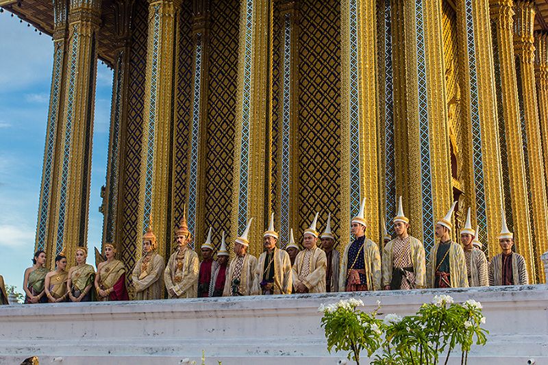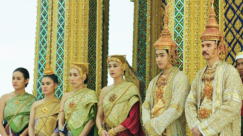 หม่อมน้อย-ม.ล.พันธุ์เทวนพ เทวกุล เผยว่า “ฉากพระราชพิธีสมโภชองค์พระพุทธบาทสระบุรีนั้น นับว่าเป็นพระราชพิธีอันศักดิ์สิทธิ์และสำคัญยิ่ง ที่องค์พระบูรพมหากษัตราธิราชแห่งกรุงศรีอยุธยาทรงปฏิบัติเป็นประจำในทุกรอบปี โดยมีการเฉลิมฉลองกันเจ็ดวันเจ็ดคืน และในฉากนี้เป็นฉากที่ “สมเด็จกรมพระราชวังบวรฯ” (ฮัท-จิรวิชญ์) และ “พระพิมานสถานมงคล” (อนันดา เอเวอริ่งแฮม) ซึ่งโดยเสด็จ “สมเด็จพระเจ้าอยู่หัวเอกทัศ” (ปีเตอร์ ชัยนาม) มาในพระราชพิธี จึงได้เห็นความงามของ “บุษบา” (แพนเค้ก-เขมนิจ) ในขณะที่นางร่ายรำสมโภชพระพุทธบาท อันเป็นจุดเริ่มต้นของโศกนาฏกรรมรักสามเส้า นับเป็นฉากใหญ่ที่รวมดารานักแสดงกันอย่างคับคั่งยิ่งใหญ่อีกฉากหนึ่งใน “ศรีอโยธยา””