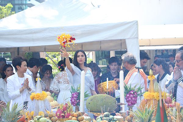 บรรยากาศภายในงานอบอุ่นสุด ๆ เพราะเหล่านักแสดงพร้อมใจกันมาร่วมพิธีเอาฤกษ์เอาชัย และงานนี้ต่างแต่งลุคแปลงโฉมตามคาแรคเตอร์ในละคร จะหล่อสวยเป๊ะปังกันขนาดไหนชมได้จากภาพเลยเห็นภาพทุ่มเทจัดเต็มตั้งแต่วันบวงสรวงขนาดนี้ แฟนๆ ละคร 7 สี คงอยากติดตามชมละครกันไวๆ แล้วล่ะ