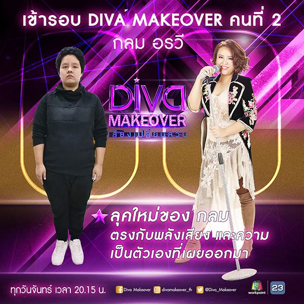 รายการ Diva Makeover เสียงเปลี่ยนสวย ออกอากาศทางช่องเวิร์คพอยท์ กดเลข 23 เปิดรับสมัครแล้วซีซั่น 2ครั้งนี้ปังกว่าเดิมแน่นอน เพราะเปิดโอกาสให้สมัครได้ทั้งชายและหญิง!!! ใครอยากสวย อยากหล่อ ถ้าคุณมั่นใจว่า “เสียงดี” เสียงจะเปลี่ยนชีวิตคุณ…อย่ากลัวที่จะเดินตามความฝัน อย่าอายที่จะทำในสิ่งที่รัก แค่กล้า...งานนี้ได้เมคโอเวอร์ให้ดูดีตั้งแต่หัวจรดเท้า พร้อมเงินรางวัล 1 ล้านบาท และมีผลงานเพลงเป็นของตัวเองอีกด้วย!!! โอกาสนี้ พลาดไม่ได้ รับสมัครทั่วประเทศ เปิดรับสมัครตั้งแต่เวลา 10.00 น. – 18.00 น. และสมัครออนไลน์ Facebook : Diva Makeover ตั้งแต่วันนี้เป็นต้นไป สอบถามรายละเอียดเพิ่มเพิ่มได้ที่ โทร 083-096-1566
