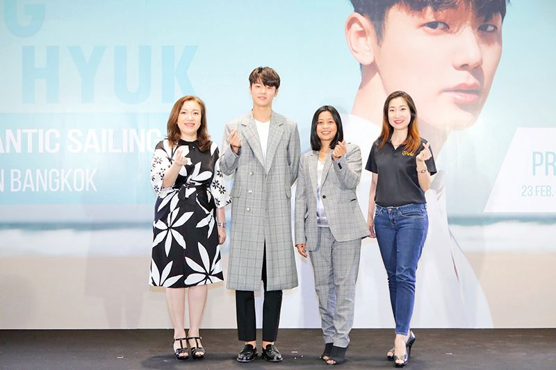 กลับมาให้เหล่า บ๊อยซ์ไทย (Boice ชื่อแฟนคลับของ CNBLUE) ได้ชื่นใจอีกครั้งตามสัญญา สำหรับ คัง มินฮยอก มือกลองหน้าใส แห่งวง CNBLUE กับงานแฟนมีตติ้งครั้งที่สอง “2018 KANG MIN HYUK ‘ROMANTIC SAILING’ FAN MEETING IN BANGKOK” โดยผู้จัด A CHI ACTIVATION จัดให้เต็มอิ่มกันเมื่อวันเสาร์ที่ผ่านมา ณ เอ็มซีซีฮอลล์ เดอะมอลล์บางกะปิ โดยในงานแถลงข่าว หนุ่ม คังมินฮยอก โชว์เสน่ห์อ้อนสาวไทย ให้ใจละลายด้วยประโยคภาษาไทยที่เตรียมมา “และจะเป็นอย่างนี้กับเธอไม่ว่านานสักเท่าไหร่” ก่อนที่ ดีเจมิกซ์-เจริญ แซ่จูพิธีกรของงานจะซักถามถึงความรู้สึกหลังห่างงานแฟนมีทกับแฟนชาวไทยไปร่วม 2 ปีรวมถึงบทบาทการเป็นคุณหมอ “กวักฮยอน” พระเอกละคร Hospital Ship ที่เจ้าตัวบอกว่ามีสิ่งหนึ่งที่บทนี้เหมือนกับตนก็คือ มีหัวใจที่อบอุ่น พอได้รับเสียงกรี๊ดตอบ เจ้าตัวเลยบอก อาจจะไม่ได้เหมือนมากซะทีเดียว แต่ก็อบอุ่นบ้างล่ะ โถ...แค่นี้สาวๆ ก็อยากจะได้สัมผัสไออุ่นกันทั่วเอเชียแล้วค่ะ จบงานแถลงชลทิชา ศรีทอง ซีอีโอบริษัท อะชิ แอคทิเวชั่นจำกัด ผู้จัดงานได้ขึ้นมอบดอกไม้ต้อนรับการกลับมาอีกครั้งของหนุ่ม มินฮยอก พร้อมด้วยผู้ร่วมสนับสนุน