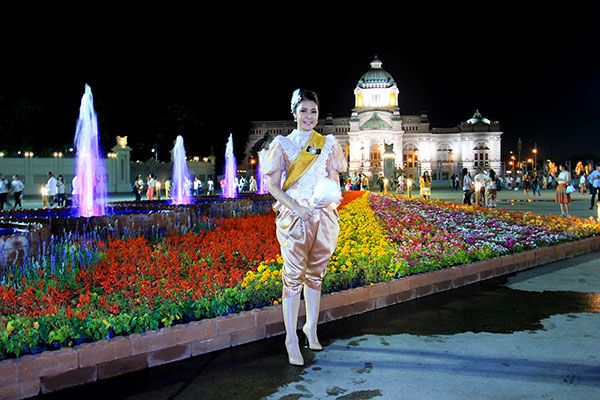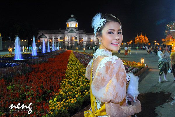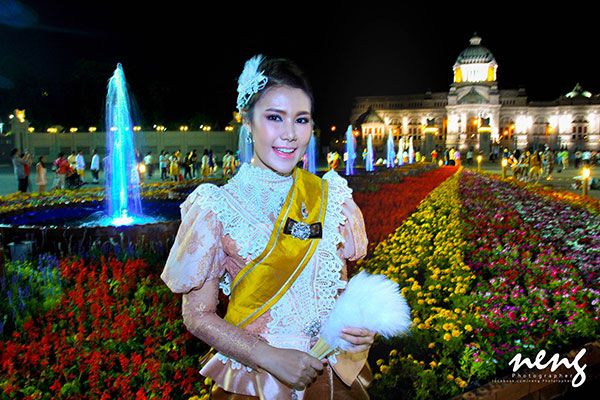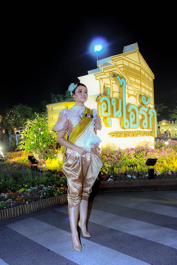 โดย “น้องน้ำฝน” กล่าวว่า “ภูมิใจและรู้สึกประทับใจมาก ๆ เลยค่ะ ได้ใส่ชุดไทยสีโอรสสวยสง่าในสมัยรัชกาลที่ 5 ค่ะ ซึ่งเป็นช่วงที่เริ่มได้รับวัฒนธรรมจากต่างชาติเข้ามาผสมผสานแล้ว ผู้หญิงจะนุ่งเป็นโจงกะเบน สวมเสื้อแบบฝรั่งแขนยาวมีลูกไม้ระบายตกแต่งหลายชั้น สวมถุงน่อง รองเท้าส้นสูง “ฝน” จะรู้สึกภูมิใจทุกครั้งที่ได้แต่งชุดไทย เหมือนมีเสน่ห์บางอย่าง เป็นชุดที่มีเอกลักษณ์วิจิตรงดงาม ไม่ว่าใครใส่ก็ดูสวยงาม ถ้ามีโอกาสก็อยากใส่ชุดไทยบ่อย ๆ ค่ะ คงต้องขอบคุณ “ร้านเวียงไหม” ที่จัดชุดสวยๆ ให้ฝนค่ะ มาร่วมงานนี้เหมือนได้ย้อนกลับไปในสมัยอดีต ทุกคนแต่งชุดไทยมาเดินเที่ยวงาน มองไปทางไหนก็เห็นแต่รอยยิ้ม ฝนก็พาคุณแม่มาเที่ยวด้วย ดอกไม้จัดเต็มสวยงามทั่วทั้งลาน ถ่ายรูปสวยมากเลยค่ะ เป็นงานที่มาเที่ยวได้ทุกเพศทุกวัย ถ้าใครว่างก็อยากให้มาเที่ยวกันนะคะ โดยงาน “อุ่นไอรัก คลายความหนาว” จะมีไปจนถึงวันที่ 11 มีนาคม นี้ ที่ พระลานพระราชวังดุสิต และสนามเสือป่า ค่ะ”