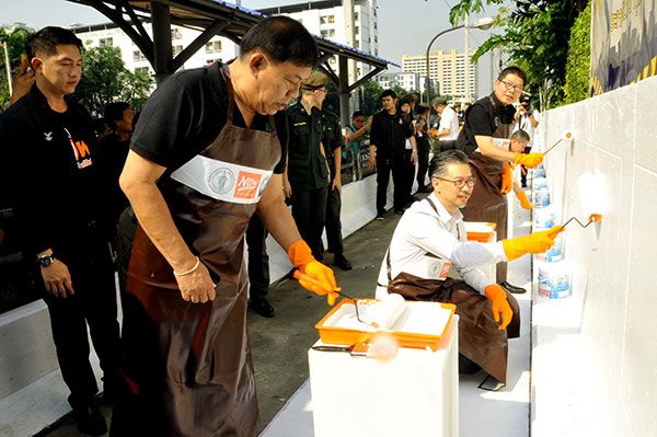 อมร อมรกุล ผู้จัดการใหญ่ปฏิบัติการศูนย์การค้า บริษัทเดอะมอลล์กรุ๊ปและผู้บริหารบริษัทเดอะมอลล์กรุ๊ปส่งมอบสี - อุปกรณ์ทาสีให้แก่กรุงเทพมหานครโดยมี พลตำรวจเอก อัศวิน ขวัญเมือง ผู้ว่าราชการกรุงเทพมหานครรับมอบพร้อมร่วมกิจกรรม“แต้มสีกรุงเทพ”ณ บริเวณท่าเรือคลองแสนแสบ เดอะมอลล์ บางกะปิที่ทางกรุงเทพมหานครจัดขึ้น ตามนโยบายปรับภูมิทัศน์ของเมือง