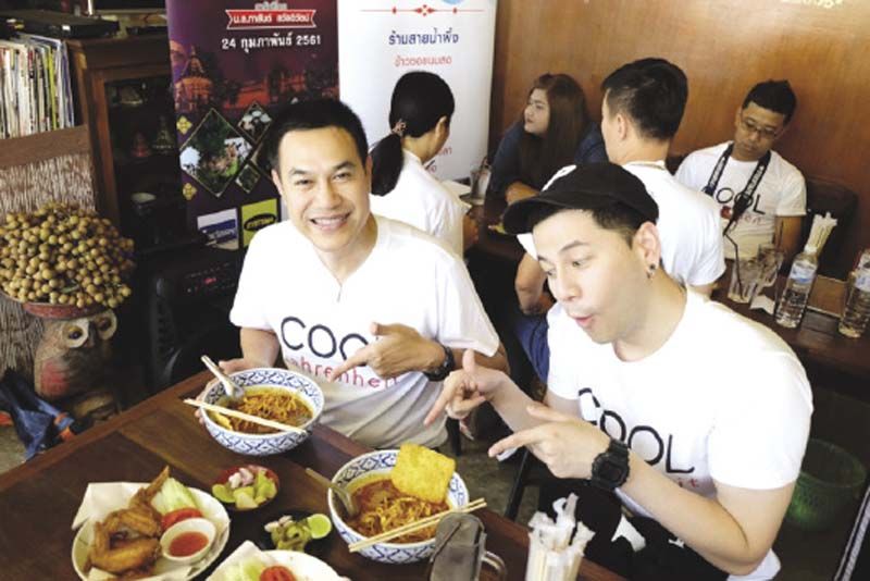 เปิดทริปความอร่อยรอบแรกของปีทั้งที “สถานีเพลงคูลฟาเรนไฮต์” เลยต้องจัดใหญ่จัดเต็ม พาแฟนคูลบินลัดฟ้าไปต๊ะต่อนยอน ณ ดินแดนล้านนา กับ “อิ๊งค์ eat all around ปี 8 : พาไปกินเดี๋ยวบินกลับ เชียงใหม่-ลำพูน” นำทีมโดยกูรูนักชิม “อิ๊งค์-ม.ล.ภาสันต์ สวัสดิวัตน์” และดีเจหนุ่มมาดกวน “คูลเจนิค-ถิรภัทร ชัยจรรยา” ประเดิมแซ่บซู้ดปากที่ ร้านลาบอ้ายแดง กับอาหารเมืองลำพูนอย่างเมนู หางหมูกรอบ แกงอ่อมเนื้อ ลาบควายสุก จิ้นส้ม ยำตับหวาน ก่อนเดินทางไปเสริมบุญบารมีกันที่ วัดพระธาตุหริภุญชัย สักการะองค์พระธาตุประจำปีเกิดของคนปีระกา จากนั้นกลับมายืนต่อแถวซื้อ เฉาก๊วยมุกดา ที่การันตีว่าอร่อยที่สุดในเมืองมนุษย์ แต่ก็ไม่หยุดแค่นั้น เพราะยังพามากินมื้อเที่ยงกันต่อที่ ร้านสายน้ำผึ้ง กับเมนูข้าวซอยนมสด ระหว่างต่อนยอนกลับมาต่อในตัวเมืองเชียงใหม่ ทุกคนยังได้ถุง กล้วยทอดโค้งครูบา ที่อัดมาทั้งกล้วยทอด มันทอด ฟักทองทอด และไข่นกกระทา ให้มาเคี้ยวกันเพลินๆ บนรถ ก่อนจะชิมเมนูฝรั่งๆ ที่ ร้าน Butter is Better แล้วไปปิดท้ายความอร่อยที่ร้านอาหารอิตาเลียน ซิโปลลี่ บาย เชฟแดน เรียกได้ว่าวันนี้ทุกคนทั้งอิ่มตา อิ่มท้องแบบต๊ะต่อนยอน On ล้านนา พร้อมกลับบ้านกันอย่างมีความสุข