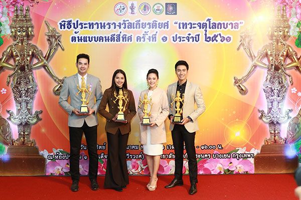 เครือข่ายสื่อมวลชนและศิลปินรักถิ่นไทย พิพิธภัณฑ์เทพศรียันตรา ร่วมกับ สมาคมสมัชชามวลชน เพื่อความมั่นคง สมาคมสถาบันคุ้มครองสิทธิประโยชน์ผู้บริโภค สมาคมสื่อมวลชน หนังสือพิมพ์ วิทยุ และโทรทัศน์แห่งประเทศไทย หนังสือพิมพ์มติไทย และหนังสือพิมพ์โปลิศนิวส์ ได้จัดทำโครงการ รณรงค์ส่งเสริมการทำความดีด้วยหัวใจ รางวัล “เทวะจตุโลกบาล” ต้นแบบคนดีสี่ทิศ ครั้งที่ ๑ ประจำปี ๒๕๖๑ เนื่องในวันนักข่าว หรือ วันสื่อสารมวลชนแห่งชาติ ในประเทศไทย ซึ่งตรงกับวันที่ ๕ มีนาคมของทุกปี เพื่อเป็นการส่งเสริมการทำดีภายใต้กุศโลบายที่มีความหมายถึง เทพที่ปกปักษ์รักษาคนดีทั้งสี่ทิศ รวมความเป็นมหามงคล เป็นขวัญและกำลังใจให้แก่บุคคล องค์กร ในการทำความดีด้วยหัวใจ เป็นเกียรติยศและมงคลยิ่งแก่ผู้รับและวงศ์ตระกูล โดยมีหม่อมเจ้ามงคลเฉลิม ยุคล ประธานในพิธีฯ และมีศิลปินดารา และเหล่าดาราจิตอาสา เข้ารับรางวัลดังต่อไปนี้ เดือนเต็ม สาลิตุล, โอริเวอร์ บีเวอร์ จากบริษัท ไนน์บีเวอร์ ฟิล์ม จำกัด (วาเนสซ่า บีเวอร์ มารับแทน), เอส-กันตพงษ์, เอก รังสิโรจน์, จิ๊บ วสุ, สุชาติ ชวางกูร, เอกพัน บันลือฤทธิ์, ทับทิม อัญรินทร์, ฟิล์ม ฉัตรดาว, นุ้ย เกศริน, ครีม ธิชาชา, อรัญญา ประทุมทอง, กุ้ง ศรุดา (กุ้ง คูนิต้า), ต่าย สายธาร, บ่าววี, จ๋า จตุจักร จากนิตยสาร ดาราอินไซด์, แหม่ม วิเวียน เป็นต้น ณ ห้องประชุม๑(สมเด็จพระมหาวีรวงศ์) มหาวิทยาลัยราชภัฎพระนคร บางเขน กรุงเทพฯ ซึ่งเหล่าดาราจิตอาสาแต่ละคนรู้สึกปลาบปลื้มใจอย่างที่สุด และขอปราวณาตัวที่จะอุทิศตนทำความดีเพื่อสังคมต่อไป!!!