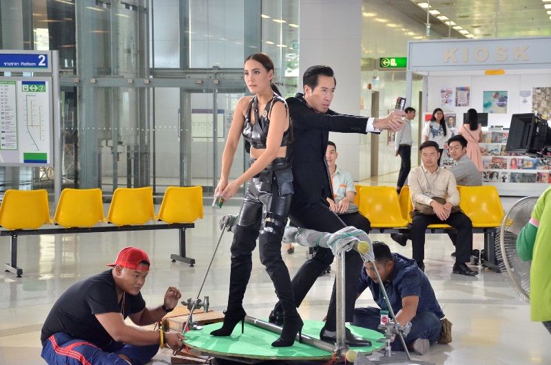 “ชอบซีนที่เข้ากับเจนี่มากที่สุดครับ เราต้องโพสต์ท่าถือกระป๋องกาแฟ แทนปืนแล้วยิงไปที่ผู้คนที่กำลังง่วงให้เขาตื่นสดชื่นขึ้นมา สนุกเพราะมันมีรีแอ็กชั่นจากผู้คนด้วย และสนุกที่ได้เล่นคู่เจนี่ พอเราได้มาเล่นแอ็กชั่นคู่กันแบบนี้ก็ทำให้เราย้อนนึกถึงตอนที่เราเคยเล่นละครบู๊คู่กันเรื่องนางโจร เมื่อนานมากแล้ว ผมเล่นเป็นตำรวจ เจนี่เล่นเป็นโจรครับ แล้วผมต้องมาจับเจนี่ แล้วสุดท้ายก็รักกัน เรตติ้งดีมากเลย (หัวเราะ) ถือเป็นละครอีกเรื่องที่ผมประทับใจมาก บรรยากาศการทำงานวันนี้เลยสนุกมาก ราบรื่บ รู้ทางหนีทีไล่กัน หลุดๆขำกันบ้าง แต่เจนี่เขาจังหวะดี เป็นนักแสดงมืออาชีพ แสดงเข้าขากันดีมากครับ”