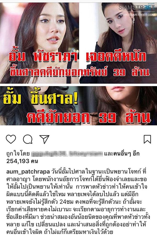 21 มี.ค.61 จากกรณีที่ซุปตาร์สาว "อั้ม พัชราภา ไชยเชื้อ" ได้เดินทางเข้าเบิกความในฐานะพยานโจทก์ในคดีฟ้อง น.ส.ชญาดา ชินวาณิชย์ และ นายอิศเรศ หรือ พัชราวรรธน์ หรือ "โจม คำแหง" ยักยอกทรัพย์กว่า 39 ล้านบาท แต่กลับโดนเว็บข่าวบางแห่งพาดหัวข่าว จนทำให้คนเข้าใจผิด