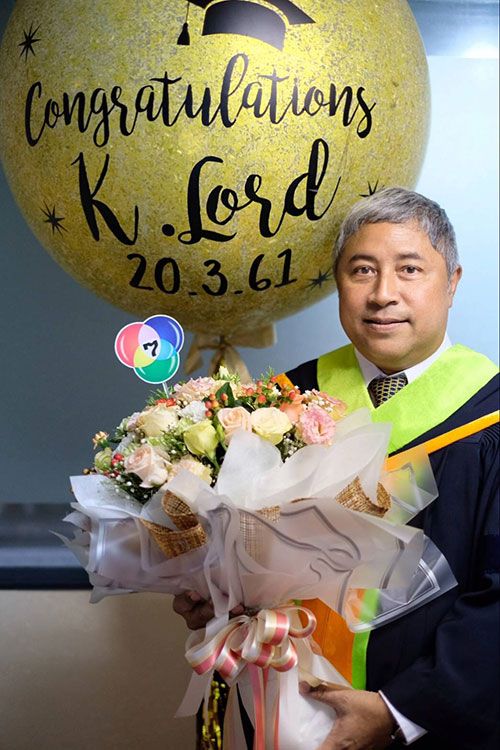 โดยมีเพื่อน พี่ น้องในวงการบันเทิงมาร่วมแสดงความยินดีมากมาย อาทิ คุณนุสรา น้องไผ่หลิว อาภานุช และเหล่านักแสดง อาทิ หนิง ปณิตา, โดนัท ภัทรพล, เนย ปภาดา, จุ๊บ อิทธิกร, นกน้อย บริพันธ์, เบน สันติราษฎร์, มาร์ช ภูบดินทร์, อ้น รติพงษ์ และ ปันปัน ภัคสิร์ชา และทีมงานดีด้า ทั้งนี้ คุณลอร์ดมีแผนที่จะเดินหน้าเรียนต่อปริญญาโท ที่จุฬาลงกรณ์มหาวิทยาลัยทันที ถือว่าเป็นคนที่ใฝ่หาความรู้อยู่ตลอดจริงๆ