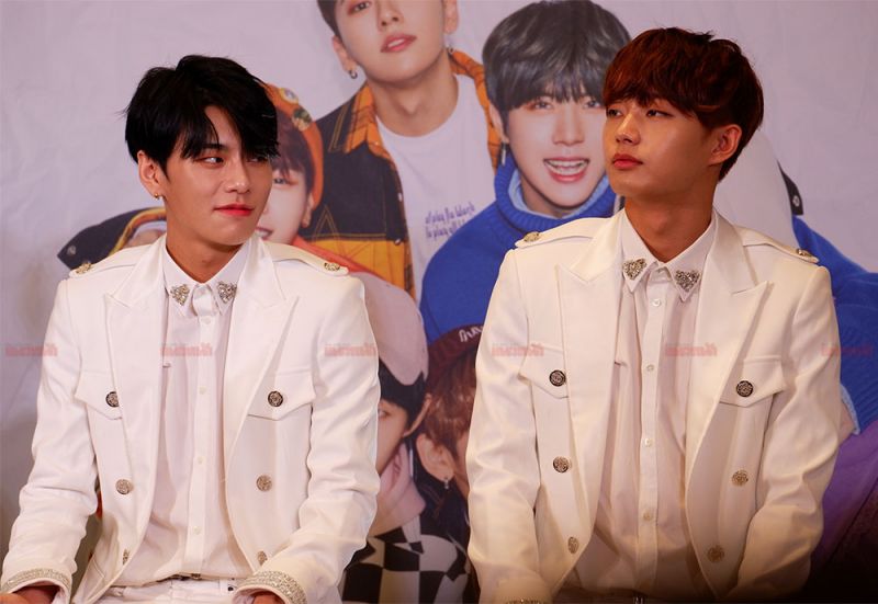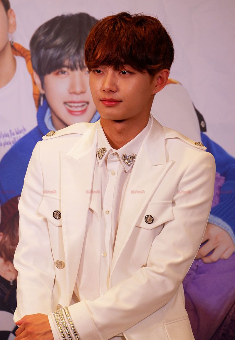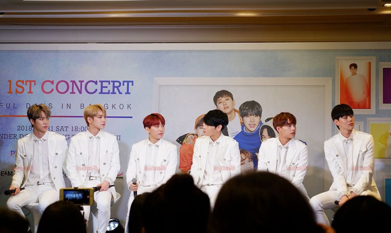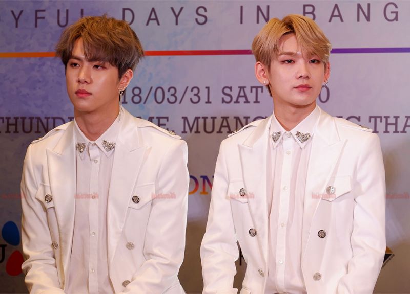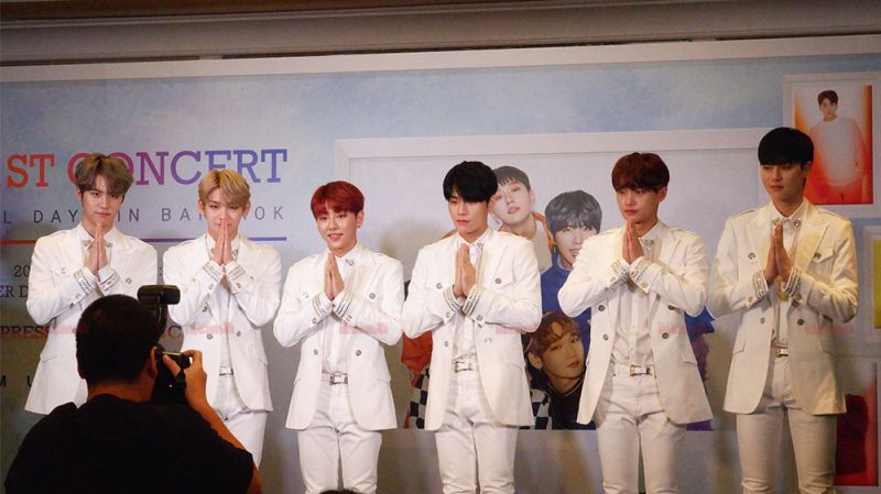 โดยหนุ่มๆ ปรากฏตัวในชุดสูทสีขาวสุดสมาร์ท ไม่รอช้าหนุ่มๆ ก็ได้กล่าวทักทายสื่อมวลชนและไม่ลืมที่จะสวัสดีเป็นภาษาไทย พร้อมเผยความในใจอ้อนแฟนๆ ชาวไทยไว้ด้วยว่า