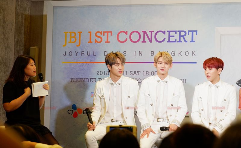 31 มี.ค.61 ไม่ปล่อยให้แฟนคลับชาวไทยรอนาน ในที่สุด 6 หนุ่ม วงJBJ นำโดย โนแทฮยอน, ทาคาดะ เคนตะ, คิมซังกยุน, คิมยงกุก, ควอนฮยอนบิน และคิมดงฮัน ก็ได้กลับมาพร้อมกับคอนเสิร์ตต่างประเทศครั้งแรก JBJ 1ST CONCERT [JOYFUL DAYS] IN BANGKOK โดยวานนี้ (30 มี.ค.) ผู้จัดใจดีอย่าง RegiStar ได้จัดงานแถลงข่าวขึ้น ณ โรงแรมแกรนด์ เซ็นเตอร์พอยท์ สุขุมวิท 55 (ทองหล่อ)