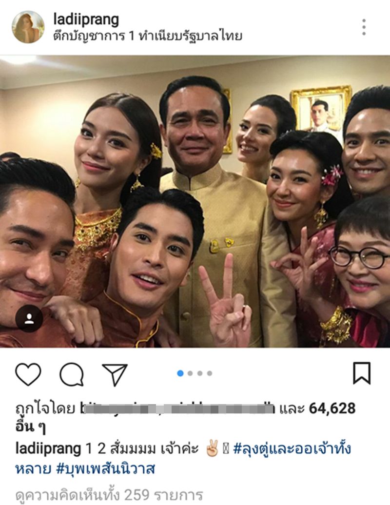 3 เม.ย.61 หลังจากคณะผู้จัดและดารานักแสดงนำจากละครดัง "บุพเพสันนิวาส" เข้าพบพล.อ.ประยุทธ์ จันทร์โอชา นายกรัฐมนตรี ที่ทำเนียบรัฐบาล เมื่อช่วงเช้าที่ผ่านมา เหล่านักแสดงชายหญิง ก็พร้อมใจกันถ่ายรูปคู่กับลุงตู่อย่างอบอุ่นใกล้ชิด