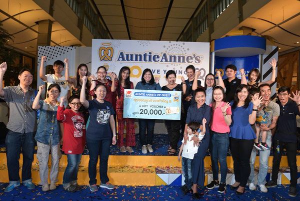 อานตี้ แอนส์ ผู้นำตลาดซอฟท์เพรทเซลในประเทศไทย บริหารงานโดยบริษัท เซ็นทรัล เรสตอรองส์ กรุ๊ป จำกัด (ซีอาร์จี) จัดงาน “Auntie Anne’s 20th ANNIVERSARY LIVE YOUNG” เฉลิมฉลองในโอกาสที่ “อานตี้ แอนส์” ก้าวเข้าสู่ปีที่ 20 อย่างยิ่งใหญ่ พร้อมเอาใจแฟนคลับด้วยมินิคอนเสิร์ตจากศิลปินหนุ่มหล่อรอยยิ้มสดใสน้ำเสียงคุณภาพ “ไอซ์-ศรัณยู วินัยพานิช” กับบทเพลงพิเศษที่นำมามอบความสุขและความสนุกสนานให้กับการเฉลิมฉลองครบรอบ 20 ปี ของอานตี้ แอนส์ โดยเฉพาะ พร้อมกันนี้ยังได้พบกับออเจ้าสาวร่างเล็ก “แอร์-ภัณฑิลา ฟูกลิ่น” พร้อมด้วยสองสาวเซเลบริตี้คนดัง “จุ๋ย-จรสพรรณ สวัสดิวัตน์ ณ อยุธยา” และ “ปอนด์-หฤทัย ไชยันต์ ณ อยุธยา” รวมไปถึงเหล่าคณะผู้บริหาร อาทิ คุณสุชีพ ธรรมาชีพเจริญ รองกรรมการผู้จัดการใหญ่-ปฏิบัติการ บริษัท เซ็นทรัล เรสตอรองส์ กรุ๊ป จำกัด (ซีอาร์จี) คุณปิยะพงศ์ จิตต์จำนงค์ และ คุณนงนภัส รำเพย ร่วมส่งมอบความสุข ความสนุกสนาน ความประทับใจ ให้กับลูกค้าและแขกผู้มีเกียรติ Big Fan อานตี้ แอนส์ ณ ลานอีเดน ศูนย์การค้าเซ็นทรัลเวิลด์
