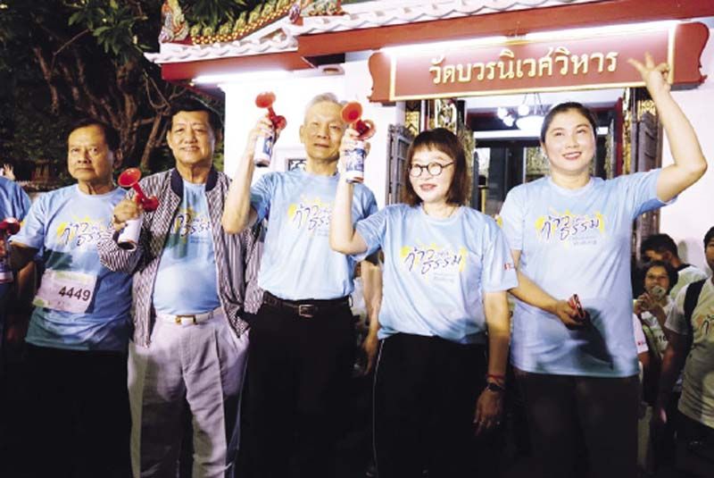 ศาสตราจารย์พิเศษ จรัญภักดีธนากุล ประธานกรรมการโครงการส่งเสริมการศึกษาพระปริยัติธรรมแผนกบาลี มูลนิธิสมเด็จพระญาณสังวร สมเด็จพระสังฆราช วัดบวรนิเวศวิหาร ในพระบรมราชูปถัมภ์ ร่วมกับ หน่อง-อรุโณชา ภาณุพันธุ์ กรรมการผู้จัดการ บริษัทบรอดคาซท์ ไทย เทเลวิชั่น จำกัด ประธานกรรมการกิจกรรมเดิน วิ่ง การกุศล “ก้าวเพื่อธรรม” และ พันเอกสุพัฒน์ ศรีดารณพ พร้อมด้วย ศิลปิน-ดารา-นักกีฬา อาทิ เต้ย-พงศกร, จ๊ะจ๋า-พริมรตา, จี๋-สุทธิรักษ์ , แอค-ฌัฏฐวุฒิ, ตั๊ก-นภัสกร, ดนัย อุดมโชค ฯลฯ ร่วมกิจกรรมเดิน- วิ่งการกุศล “ก้าวเพื่อธรรม” เพื่อถวายเป็นพระราชกุศลและน้อมรำลึกถึง พระมหากรุณาธิคุณในพระบาทสมเด็จพระปรมินทร มหาภูมิพลอดุลยเดช บรมนาถบพิตร และสืบทอดพระพุทธศาสนาให้เจริญมั่นคงสถาพร โดยเริ่มออกจากจุดสตาร์ท ณ วัดบวรนิเวศวิหาร หลังเสร็จสิ้นจากการวิ่งได้มีพิธีมอบของที่ระลึกให้กับผู้ส่งเสริมการศึกษาพระปริยัติธรรมแผนกบาลี ซึ่งรายได้จากการสมัครเดิน-วิ่งครั้งนี้เพื่อสมทบทุนส่งเสริมสำนักศาสนศึกษาที่มีวิริยอุตสาหะจัดการศึกษาพระปริยัติธรรมแผนกบาลี