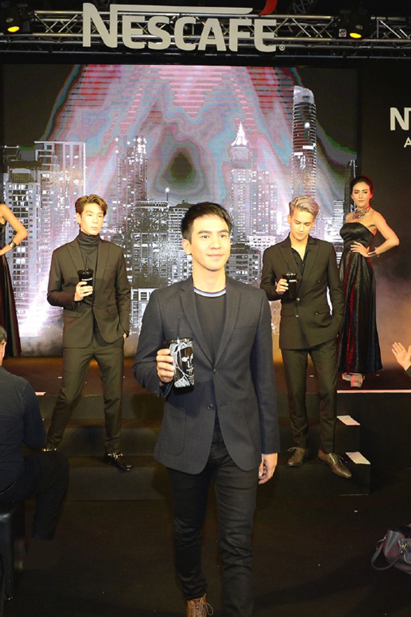 มาเดินแบบในอีกลุคหนึ่งเท่ๆ สะท้อนถึงความเป็นเดอะนิวแบล็คเทรนด์ การดื่มกาแฟอเมริกาโน่ในกลุ่มคนรุ่นใหม่ ซึ่งผมมั่นใจว่ามาแรงแน่นอน อย่างผมเป็นคนค่อนข้างดูแลตัวเอง ยิ่งมาเล่นละครเรื่องบุพเพสันนิวาส มันมีฉากต้องถอดเสื้อโชว์หุ่นเยอะ ก็จะชอบดื่มกาแฟอเมริกาโน่พอได้มาเจอเนสกาแฟ อเมริกาโน่ ใหม่ ที่ผสมอาราบิก้าคั่วบดละเอียดให้สัมผัสและกลิ่นที่หอมมากๆ และยังออกแบบมาให้เราสามารถชงดื่มเองได้ง่ายๆ ที่บ้านแบบนี้ ผมว่าผมเจอกาแฟแก้วโปรดของผมแล้ว และจะนำติดตัวไปดื่มที่กองถ่ายละครด้วยครับ”