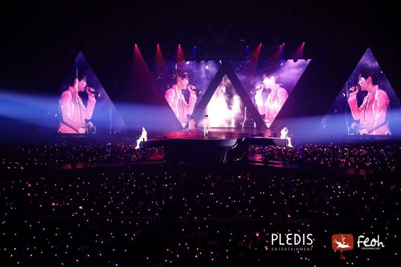 เริ่มต้นความสุขกันด้วยความงดงามของฮอลล์ที่กลายเป็นดวงดาวสีชมพู จากแท่งไฟของเหล่า Thai L.O.ㅅ.E (เลิฟ ชื่อแฟนคลับของนิวอีสต์ ) ก่อนที่ 4 หนุ่ม จะปรากฏตัวพร้อมชุดสูทสีขาว ในเพลง WHERE YOU AT จากอัลบั้มล่าสุด W, HERE ต่อเนื่องความมันกันด้วยเพลง Face และ Action เพลงในตำนานจากอัลบั้มแรกๆ ที่โชว์ให้เห็นพลังและเพอร์ฟอร์แมนอันหนักแน่น เพลง OVERCOME, Love Paint เพลงช้าโชว์เสียงร้องที่มาพร้อมท่าเต้นเซ็กซี่ เพลง VVITH, EMOTION, Hey, LOVE เพลงสดใสที่เผยให้เห็นมุมน่ารักขี้เล่นของหนุ่มๆ และเพลง ONEKIS2, HELLO, IF YOU เพลงฮิตที่จะขาดไปไม่ได้ของนิวอีสต์