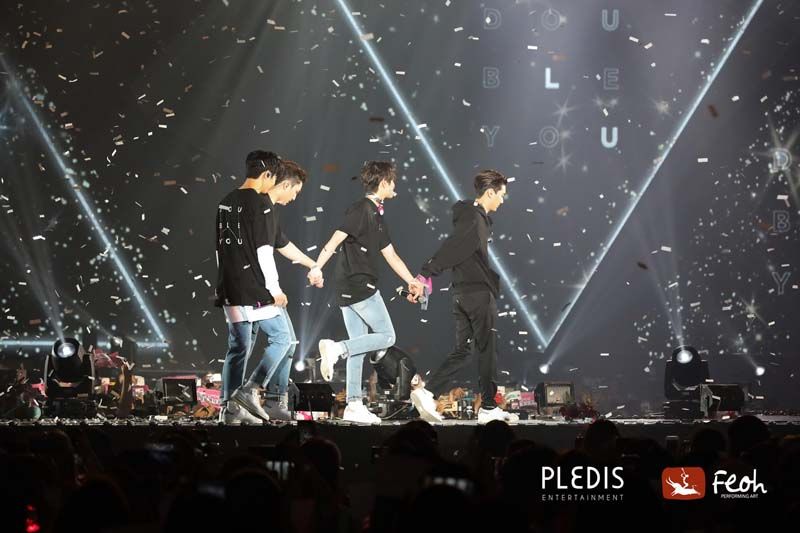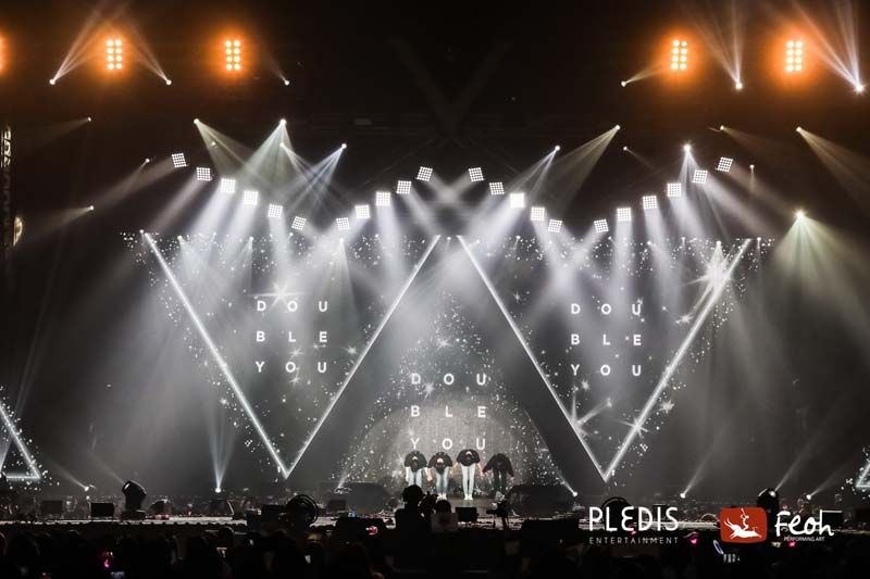 มาถึงช่วงที่พูดคุยที่เหล่าเลิฟรอคอย 4 หนุ่มพูดทักทายเป็นภาษาไทย พร้อมเผยความรู้สึกว่า อารอน : ชื่อคอนเสิร์ต DOUBLE YOU มาจาก W ชื่อยูนิตของพวกเราและอีกความหมายหนึ่งคือ ดับเบิ้ล ที่แปลว่าสองเท่า เราเตรียมการแสดงมาเป็นสองเท่าให้แฟนได้ชมกันจนสุดท้ายของคอนเสิร์ตวันนี้, เจอาร์ : ขอบคุณที่แฟนๆ มากันเต็มฮอลล์ การได้มาเล่นคอนเสิร์ตในไทยคือความฝันที่เป็นความจริงของพวกเรา ขอบคุณที่ทำให้ฮอลล์นี้เต็มไปด้วยความรักของทุกคน สัญญาว่าจะตอบแทนความรักของทุกคนด้วยเพลงดีๆ, ดงโฮ : ผมจำได้ว่าตั้งแต่เดบิวมาพวกเราสร้างความทรงจำในไทยมาเยอะมากเลย ประเทศไทยเป็นประเทศที่พิเศษมากๆ รักมากๆ เลยรู้สึกเป็นเกียรติที่ได้เล่นในฮอลล์ใหญ่แบบนี้ ขอบคุณที่ทำให้พวกเรามีความสุขมากๆแบบนี้ พวกเราจะไม่ลืมเลย, เร็น : ขอบคุณเลิฟไทยที่รอพวกเรามานานมากๆ ขอบคุณที่ต้อนรับพวกเราทุกครั้งที่มาไทย สัญญาว่าจะเป็นคนที่ดีขึ้นเรื่อยๆ เก่งขึ้นเรื่อยๆ