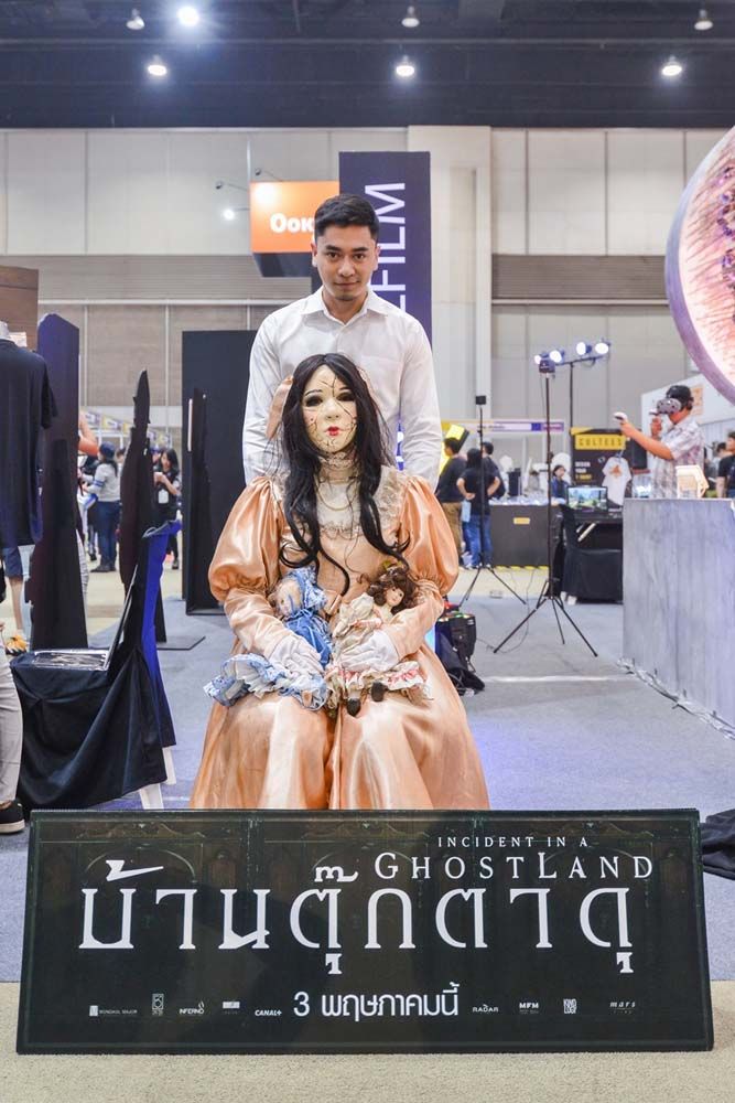 นอกจากนี้ภายในบูธยังย้ำความหลอนสยองกันให้เห็นจังๆ กับภาพยนตร์ชวนสะพรึงแห่งปีกับ “INCIDENT IN A GHOSTLAND บ้านตุ๊กตาดุ” ที่ยกเอาตัวละคร ตุ๊กตา ผวาชวนช็อคในเรื่องมาออกอาละวาดไปทั่วงาน ทำเอาคนที่ผ่านไปมาต้องสะดุ้งสุดตัว หลอนระดับสิบมาให้เจอกันแบบใกล้ชิด
