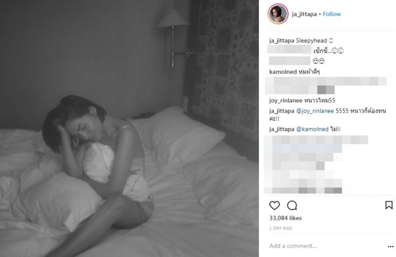 แม้จะแต่งงานมีครอบครัวไปแล้วแต่ก็แซ่บสำหรับ “จ๊ะ จิตตาภา แจ่มปฐม” เพราะหลังจากแต่งงานกับแฟนหนุ่มรู้ใจ “เอิน นิธิภัทร์” ก็ดูเหมือนดีกรีความแซ่บจะพุ่งกระฉูดขึ้นเป็นกอง กับภาพล่าสุดสาวจ๊ะ ก็จัดเต็มความเซ็กซี่อีกเช่นเคย ด้วยการโพสต์ภาพตัวเองใส่ชุดนอนสายเดี่ยวซีทรูสุดเซ็กซี่ตามแบบฉบับที่สามีชอบ นั่งโพสท่าสุดหวิวบนเตียงในห้องนอน พร้อมระบุแคปชั่นเอาไว้ว่า “Sleepyhead” เรียกได้ว่าทำเอาฮือฮาในโลกโซเซียลไม่น้อยเลยทีเดียว
