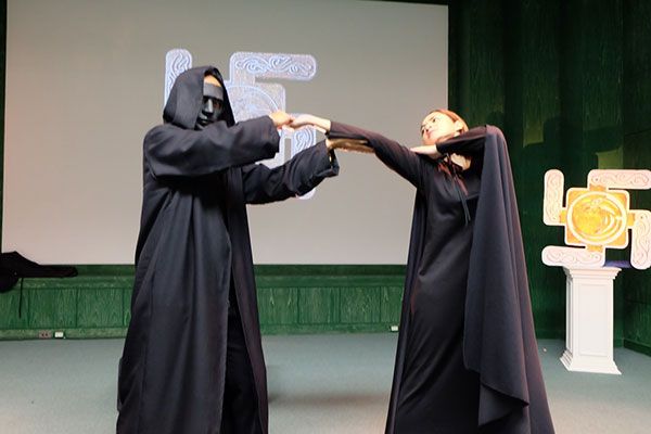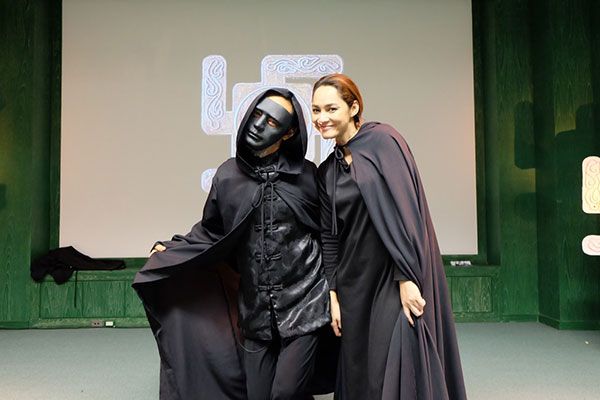 ฉากนี้ทีมงานใช้พื้นที่ หอจดหมายเหตุเฉลิมพระเกียรติ ย่านคลองคลวง คลอง 5 จ.ปทุมธานี เป็นสถานที่ถ่ายทำ โดยเริ่มถ่ายฉากที่ มรกต (ยุ้ย จีรนันท์) ปลอมตัวเข้ามาในคฤหาสน์ของจางซูเหลียง โดยมีสายตาของ จางซูเหลียง จับตาดูทุกอิริยาบถ เนื่องจาก มรกต หน้าตาเหมือน จิงซู ภรรยาของเขาจากนั้นทีมงานก็เซ็ทฉากในห้องประชุม มีนักแสดงครบทีม ทั้ง ยุ้ย และซี ที่มาในชุดจัดเต็ม จากนั้นก็เป็นคิวของ ปกรณ์ ที่ประกาศว่า “เรียนเชิญนายท่าน” ภาพของชายในชุดเสื้อคลุม ใส่หน้ากาก ปรากฏอยู่ตรงหน้า พร้อมตัวสัญลักษณ์ “สิ่งเอ็ง” บนจอ ทุกคนยืนทำความเคารพเมื่อ จางซูเหลียง กำลังพูดถึงข่าวลือ ก็เป็นคิวของ สาวปลา ที่กระโดดขึ้นเวที หมายจะฆ่า จางซูเหลียง แต่เขาหลบทัน ซึ่งตรงนี้มีคิวบู๊เล็กน้อย สุดท้าย อี้หลาน ก็แพ้ จางซูเหลียง ทำให้ ชีพ และ มรกต ต้องพา อี้หลาน หนี!!!