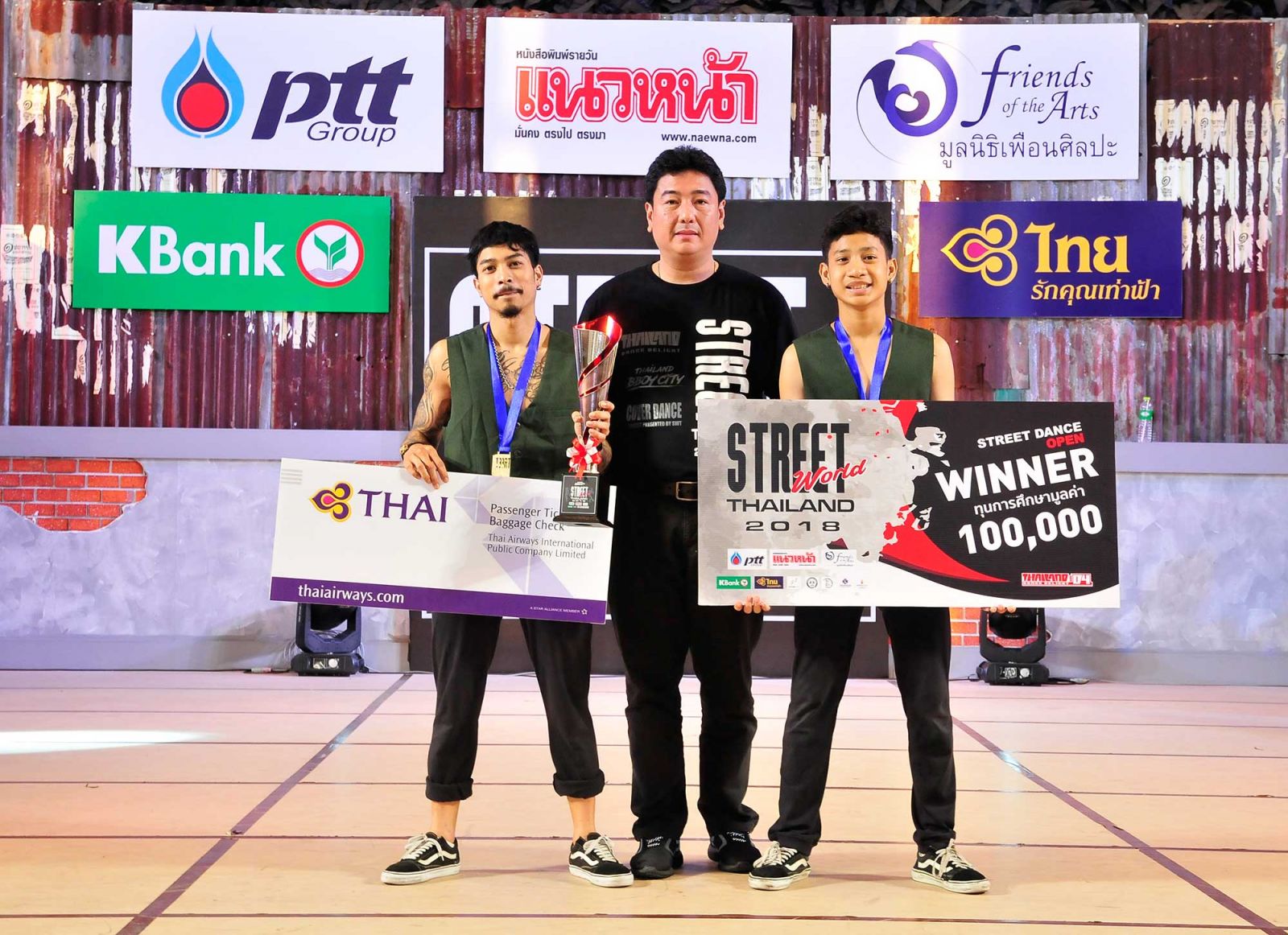 สำหรับงานนี้ต้องขอบคุณผู้ใหญ่ใจดี คุณผรณเดช พูนศิริวงศ์ กรรมการผู้จัดการหนังสือพิมพ์แนวหน้า ประธานจัดงาน street world Thailand พร้อมด้วย คุณเศกสันต์ นาคทองแก้ว เจ้าของสิขสิทธิ์ Street World Thailand และ คุณราชศักดิ์ วงศ์เงิน เจ้าของลิขสิทธิ์ Bangkok B-Boy City ร่วมจัดการแข่งขัน Cover Dance&B-boy Battle&Street Dance Showcase