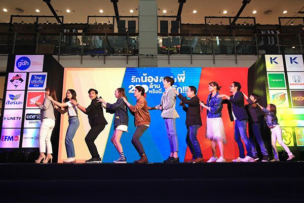 “จีดีเอช” จัดงานประกาศรายได้ภาพยนตร์ น้อง.พี่.ที่รัก “รักน้อง คิดถึงพี่ 200 ล้านหรือนี่...ที่รัก!!!” ณ ลานอีเดน ศูนย์การค้าเซ็นทรัลเวิล์ด โดยมี จินา โอสถศิลป์ ประธานเจ้าหน้าที่บริหาร มอบรายได้จากการประมูลของ 3 นักแสดงนำ ซันนี่ สุวรรณเมธานนท์, นิชคุณ หรเวชกุล และ ญาญ่า เสปอร์บันด์ ให้กับมูลนิธิมาราธิบดี และ ศิริราชมูลนิธิกองทุนวิจัยเซลล์บำบัดเพื่อการรักษาโรคมะเร็ง พร้อมชมโชว์พิเศษจากศิลปิน อุ้ย-ระวิวรรณ จินดา เพลง “พี่ชายที่แสนดี” ที่มาร่วมร้องกับน้องๆ นักแสดงทุกรุ่น ตามด้วยโชว์เรียกเสียงกรี๊ดจากแฟนๆ เมื่อ นิชคุณ-ซันนี่-ญาญ่า-พรอยมน และถนอม สามโทน มาร่วมร้องเพลง นินจา, โสด และ คนบ้านเดียวกัน พร้อมท่าเต้นสุดแสนจะน่ารัก สร้างความประทับใจให้กับผู้ชม