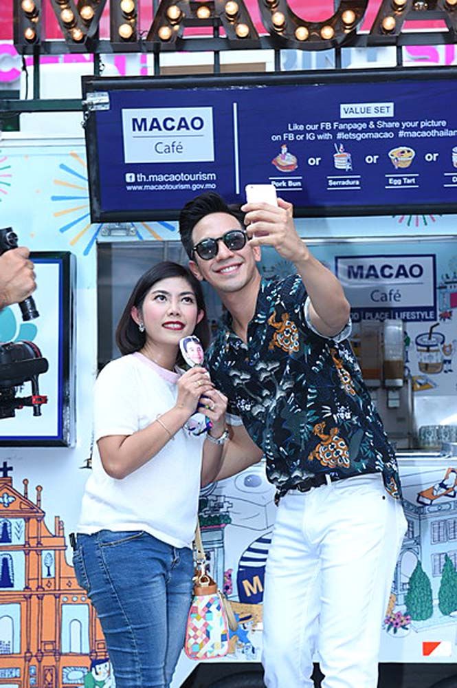 โป๊ป-ธนวรรธน์ วรรธนะภูติ ร่วมกดปุ่มเปิดงานเคียงข้าง มาเรีย เฮเลน่าเดอ เซนน่า เฟอนานเดส ผู้ว่าการสำนักงานการท่องเที่ยวมาเก๊า ที่บินตรงจากมาเก๊าเพื่อมาเป็นประธานในงานเปิดตัวแคมเปญ “2018 Year of Gastronomy :ปีแห่งอาหารสู่วัฒนธรรมสัมผัสประสบการณ์สุดพิเศษที่มาเก๊า” อย่างเป็นทางการครั้งแรกในประเทศไทย เพื่อร่วมเฉลิมฉลองในฐานะที่ เขตบริหารพิเศษมาเก๊าแห่งสาธารณรัฐประชาชนจีน ได้รับแต่งตั้งจากองค์การยูเนสโก ยกระดับให้เป็นเมืองแห่งศิลปะและวัฒนธรรมด้านอาหาร “Creative City of Gastronomy” โดยมี อุรชา จักรธรานนท์ ผู้จัดการทั่วไป สำนักงานการท่องเที่ยวมาเก๊าประจำประเทศไทย และคณะฯ ร่วมแสดงความยินดี ณ บริเวณลานเซ็นเตอร์พ้อยท์ ออฟ สยามสแควร์ เพื่อเป็นการขอบคุณนักท่องเที่ยวไทยที่หลั่งไหลไปเยือนมาเก๋า พร้อมกันนี้หนุ่ม “โป๊ป” ยังได้ทำกิจกรรมร่วมกับผู้โชคดี ทั้งถ่ายภาพเซลฟี่, กอด, มอบตุ๊กตาจำลอง เรียกเสียงกรี๊ดจากเหล่าแฟนคลับ และบรรดามาเก๊าฟู้ดเลิฟเวอร์กันสนั่นสยาม โป๊ป-ธนวรรธน์เผยว่า “รู้สึกดีใจมากที่ได้รับเกียรติมาเป็นส่วนหนึ่งของงานวันนี้ และได้รู้ว่ามาเก๊ามีสถานที่ท่องเที่ยวที่น่าสนใจมากมาย ถึงขนาดได้รับรางวัลจากยูเนสโก ให้เป็นเมืองแห่งการสร้างสรรค์ทางด้านอาหาร เพราะ มาเก๊า มีวัฒนธรรมที่หลากหลาย ไม่ว่าจะเป็นวัฒนธรรมจีน โปรตุเกส ทำให้มีความผสมผสานกันอย่างกลมกลืน และถ่ายทอดมาสู่อาหารครับ”