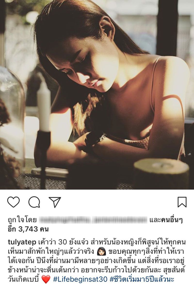 “เค้าว่า 30 ยังแจ๋ว สำหรับน้องหญิงก็พิสูจน์ให้ทุกคนเห็นมาสักพักใหญ่ๆแล้วว่าจริง ขอบคุณทุกๆสิ่งที่ทำให้เราได้เจอกัน ปีนึงที่ผ่านมามีหลายๆอย่างเกิดขึ้น แต่สิ่งที่รอเราอยู่ข้างหน้าน่าจะตื่นเต้นกว่า อยากจะรีบก้าวไปด้วยกันละ สุขสันต์วันเกิดเบบี้ #Lifebeginsat30 #ชีวิตเริ่มมา5ปีแล้วนะ”