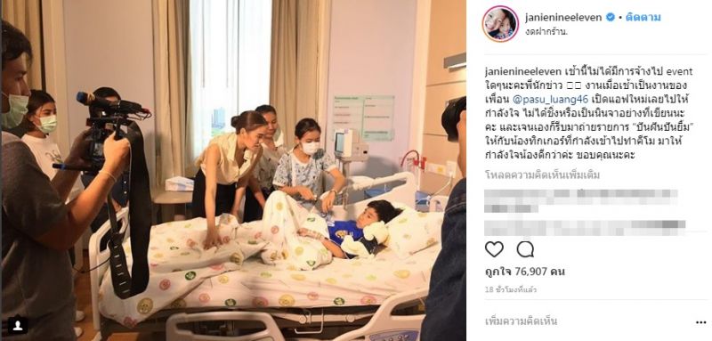 “เช้านี้ไม่ได้มีการจ้างไป event ใดๆ นะคะพี่นักข่าว? งานเมื่อเช้าเป็นงานของเพื่อน @pasu_luang46 เปิดแอฟใหม่เลยไปให้กำลังใจ ไม่ได้ชิ่งหรือเป็นนินจาอย่างที่เขียนนะคะ และเจนเองก็รีบมาถ่ายรายการ “ปันฝันปันสุข” ให้กับน้องทิกเกอร์ที่กำลังเข้าไปทำคีโม มาให้กำลังใจน้องดีกว่าค่ะ ขอบคุณนะคะ”
