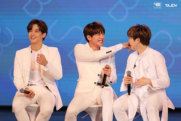 ซึ่งก่อนที่มีตติ้งจะเริ่ม หนุ่มๆได้ออกมาเเจกเเฟนไซน์ที่บริเวณหน้างานเป็นการอุ่นเครื่อง นับเป็นความพิเศษแรกที่มอบให้กับเฉพาะ Lucky Fan แม้จะเป็นเพียงกิจกรรมแรกหนุ่มๆ ทุกคนก็มอบความรักให้กับกิจกรรมนี้อย่างเต็มที่ และทันทีที่ในอัลตร้า อารีน่า ฮอลล์ เปิดตัวทั้ง 9 หนุ่มออกมาในชุดสูทสีขาวโชว์สเต็ปปลุกความคึกคักด้วยเพลง Feeling เเละ Raise me up เรียกเสียงกรี๊ดจาก ยูเเอนด์มี ชาวไทยจนฮอลล์สะเทือน ก่อนที่พิธีกรจะออกมาชวนหนุ่มๆ พูดคุยทักทายเเฟนคลับ เลยทำให้รู้ว่า อึยจิน และ จีฮันซลเคยมาประเทศไทยแล้วครั้งหนึ่ง ในขณะที่ โกโฮจอง เคยอยู่ประเทศไทยถึง 7 ปี ส่วนคนที่เพิ่งเคยมาครั้งเเรกอย่าง จุน เผยอยากเรียนมวยไทย เพราะชอบหนังเรื่ององค์บากมาก ฟีลด็อก อยากไปเชียงใหม่เเละพัทยา และ มาร์โค อยากเก็บจิ้งจกไทยกลับไปที่เกาหลีด้วยเพราะไม่ค่อยได้เจอ ฮากันพอประมาณก็ถึงช่วงเล่นเกมส์ท้าความสามัคคีกันซักหน่อย กับ UNB OLYMPIC การเเข่งขัน 9 เกมภายใน 15 นาที ประกอบไปด้วย เกมเเรก Mouth 2 Mouth ทั้ง 9 หนุ่มจะต้องส่งกระดาษปากต่อปากส่งต่อกันไปไม่ให้หล่น ซึ่งหนุ่มๆก็เล่นกันจริงจังจนแฟนๆในฮอลล์เขินบิดม้วน จิกเกร็งตัวกันไป! ต่อด้วยเกมส์ที่ 2 พ่นเม็ดเเตงโมให้ติดบนใบหน้า ซึ่งจุดที่จะได้คะเเนนมากที่สุดคือรูจมูก ตามมาด้วยเกมส์ที่ 3 ต่อตัวเป็นรูปพีระมิดพร้อมพูดสโลแกน เกมส์ต่อไป ดื่มนมเปรี้ยวรวดเดียวหมด , วิดพื้น 10ครั้ง , เต้นคัพเวอร์ 3 เพลง , รับบอลด้วยบั้นท้าย 5 ลูก , ช่วยกันดื่มน้ำอัดลม 1 ขวดให้หมด และ เต้นเพลง Feeling ด้วยสปีดความเร็วแบบคูณสอง ซึ่งหนุ่มๆสามารถชนะไปด้วยความวุ่นวายภายในเวลาไม่ถึง 15 นาที นับเป็นเกมที่ฉีกกฏเกณฑ์ทุกเกมของเหล่าไอดอลเกาหลีกับงานแฟนมีทติ้ง ต้องยอมรับสปริตของทั้ง 9 หนุ่ม ที่ต่างก็ทุ่มเท เล่นทุกเกมแบบจริงจัง ก็เพื่อมอบความสุข ความสนุกให้กับแฟนๆ ทุกคนในฮอลล์ให้ได้ชมกัน ... เพียงแค่ได้เสียงกรี๊ดและรอยยิ้มจากยูเเอนด์มี ก็ถือเป็นรางวัลใหญ่ที่มอบกลับไปให้กับพวกเค้าก็เพียงพอแล้ว บินตรงมามอบความสุขให้กับ UNMe (ยูเเอนด์มี-ชื่อเรียกของแฟนคลับยูเอ็นบี) ชาวไทยได้ฟินเป็นครั้งแรก สำหรับ 9หนุ่ม “UNB” (ยูเอ็นบี) นำทีมโดย JUN (จุน) , EUI JIN (อึยจิน) , KO HO JUNG (โกโฮจอง) , FEELDOG (ฟีลด็อก) , MARCO (มาร์โค) , JI HAN SOL (จีฮันซล) , DAE WON (แดวอน) , KI JUNG (กีจุง) เเละCHAN (ชาน) ในงาน “UNB 1st FANMEETING IN BANGKOK : YOU&ME” (ยูเอ็นบี เฟิร์ส เเฟนมีทติ้ง อินเเบงค็อก : ยู แอนด์ มี) เมื่อวันเสาร์ที่ 9 มิถุนายน ที่ผ่านมา ณ ULTRA ARENA HALL ชั้น 6 SHOW DC จัดเต็มความพิเศษให้กับทุกที่นั่ง โดยผู้บริหารหนุ่ม กึ้ง เฉลิมชัย มหากิจศิริ แห่งโฟร์ วัน วัน เอ็นเตอร์เทนเม้นท์ (Fo