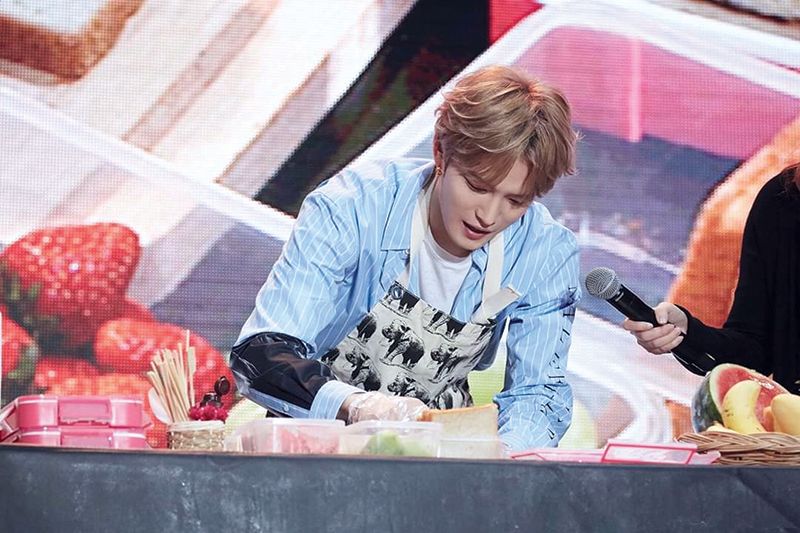 จากนั้นหนุ่มหล่อมุขแน่นขอวางไมค์มาจับมีดทำหน้าที่ เชฟคิม ในช่วง “Made By JJ” เตรียมเสิร์ฟอาหารว่างให้แฟนคลับผู้โชคดี 3 คน โดยได้นำเอาผลไม้ต่างๆ ไม่ว่าจะเป็นกล้วย มะม่วง สตรอเบอร์รี่ ฯลฯ มาหั่นอย่างคล่องแคล่ว แล้วประกอบร่างเป็นแซนด์วิชผลไม้สูตรพิเศษ ซึ่งเชฟการันตีว่าอร่อย แถมไม่หวั่นแม้พิธีกรจะแซวว่ากินได้ใช่มั้ย? ซีนเด็ดมาเต็มเช่นตอนพิธีกรถามว่าไม่เห็นมีผลไม้เสียบไม้ใส่ลงไปด้วยเลย เชฟคิมบอกว่าจัดให้ครับ เมนูนี้ทำไม่ยาก ว่าแล้วก็หยิบแท่งไม้ที่ยาวไม่เกิน 1 คืบ ไปเสียบแตงโมผ่าซีกขนาดครึ่งลูก! เล่นเอาทั้งฮอลล์ตะลึงขำกลิ้ง!! ตามด้วยเสียบมะม่วงไปอีกหนึ่งลูกใหญ่ก่อนจะหัวเราะอย่างชอบใจที่สามารถแกล้งพิธีกรคืนได้ อีกโมเมนต์ที่ทำเอาแฟนคลับฮากระจัดกระจายก็ตอนที่ทยอยเอาแซนด์วิชจัดใส่ลงกล่อง แล้วตกแต่งด้วยผลไม้ในช่องที่ยังว่าง ชิ้นไหนที่ใส่ลงกล่องไม่ได้ เชฟคิมก็จัดการทั้งเฉือน ตัด และกัด! จนสามารถปิดกล่องลงตัว ส่งมอบให้ผู้โชคดีทั้งสาม แถมด้วยลายเซ็นบนฝากล่อง จัดไปครบทั้ง แตงโม, มะม่วง, สับปะรดเสียบไม้อีกหนึ่งความแจจุงที่พีคได้โล่จริงๆ