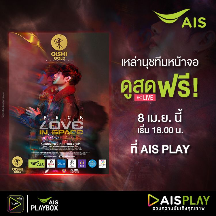 “เป๊ก - ผลิตโชค อายนบุตร” ที่จะชวนทุกคนมาสร้างความทรงจำดีๆ อีกครั้งใน “OISHI Gold Presents PECK PALITCHOKE Concert # 2 : LOVE IN SPACE” ถ่ายทอดสดส่งตรงจากรอยัล พารากอนฮอลล์สยามพารากอน ติดตามชมได้ในวันจันทร์ที่ 8 เมษายน 2562 ตั้งแต่เวลา 18.00 เป็นต้นไป