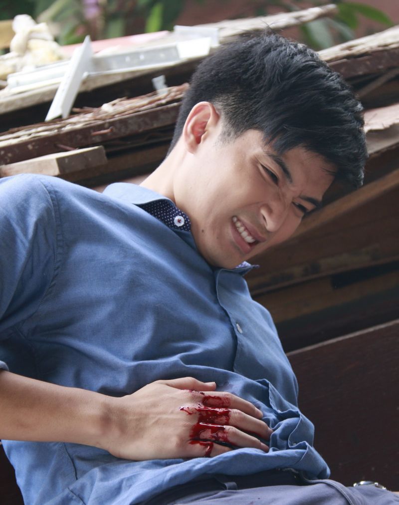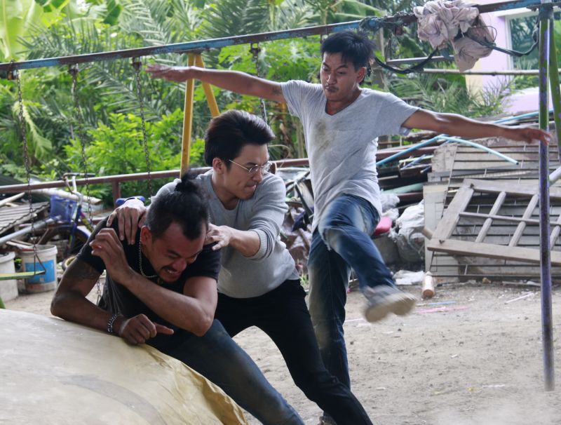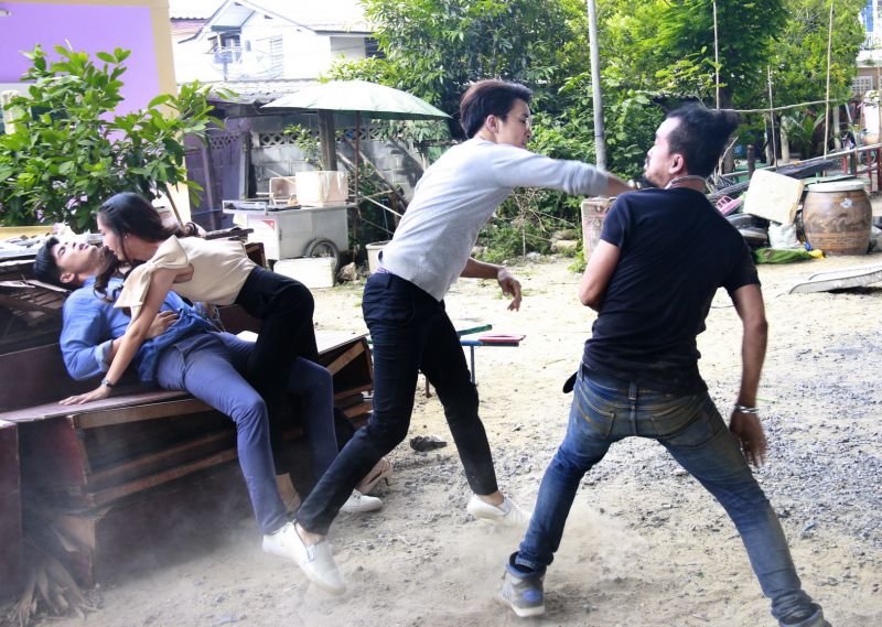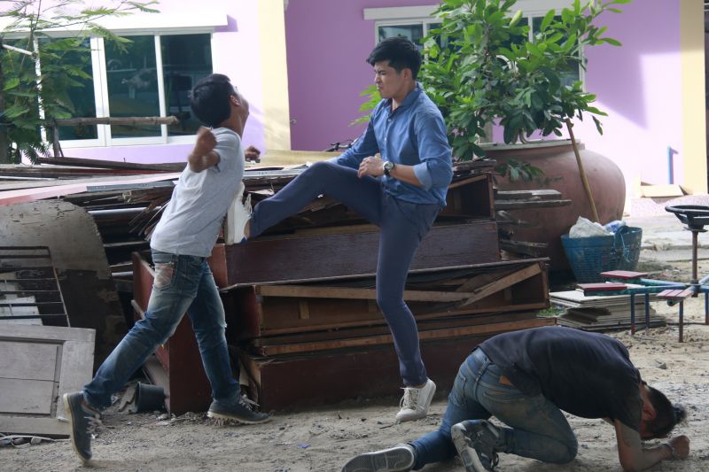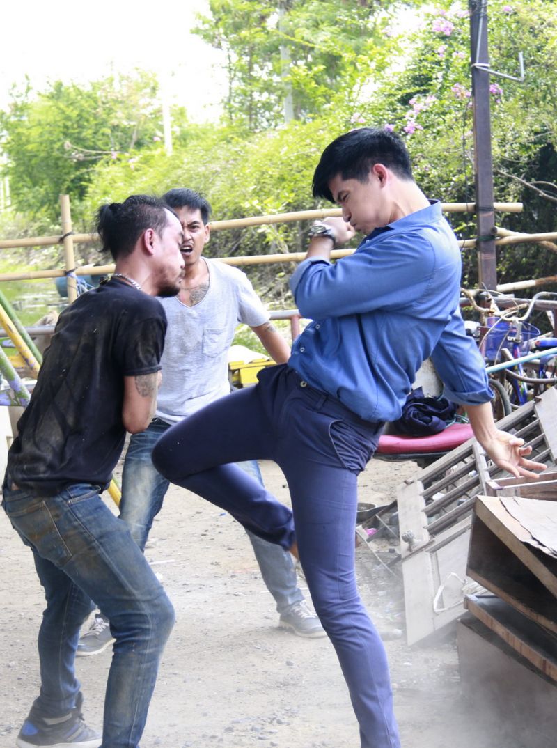 ฉากนี้ ถ่ายที่ กลางชุมชนบึงพระรามเก้า ปกติ ตูมตามบู๊เดี่ยวยืนหนึ่ง ก็งานช้างอยู่แล้ว ครั้งนี้ ผู้กำกับ อัครพล บัวแตง ให้ บอส-แบงค์ ร่วมวงโชว์บู๊เกรดพรีเมี่ยมด้วย แค่ซ้อมจังหวะก็ชุลมุนสุดๆ เลยต้องแม่นบล็อกกิ้ง ถ่ายจริง ตูมตามเปิดฉากลูกถีบ เข่าลอยใส่จิ๊กโก๋ก่อน จากนั้นก็ซัดกันโบ๊ะบ๊ะๆ แยกไม่ออกใครเป็นใคร จนฝุ่นคละคลุ้งไปหมด แต่ตูมตามโชว์ไม่กี่สเต็ป ก็ถูกจิ๊กโก๋แทงนั่งจมกองเลือด แซนดี้เห็นตูมตามเลือดออก รีบเข้าไปช่วย แต่จิ๊กโก๋กะจะซ้ำตูมตามให้ตายคาที่ แซนดี้รีบเอาตัวเข้าบัง โชคดีแบงค์เข้ามาช่วยได้ทัน กระโดดถีบจิ๊กโก๋ กระเด็น แล้วตีเข่ากระทุ้งเป้าปั๊กๆ แบงค์บู๊แทบหมดแรง แต่จิ๊กโก๋ฤทธิ์เยอะยังจะไฝว้ต่อ ดีที่บอสตามมาปิด จ๊อบการบู๊ ด้วยลีลาจระเข้ฟาดหาง ก่อนจะควักปืนมาหยุดทุกอย่าง สิ้นเสียงคัท แบงค์ ตูมตาม บอกขอรถพยาบาลที ฝุ่นเต็มปอดแล้วเนี่ย ติดตามชมฉากนี้ได้ วันอังคารที่ 23 เมษายน 2562 เวลา 18.45 น. ทาง ช่อง 8 กดเลข 27