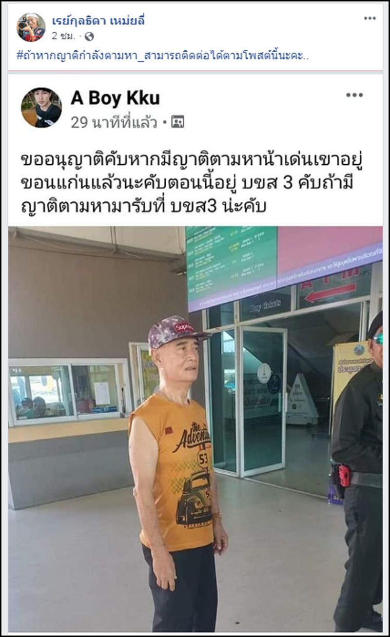 โซเชียลแชร์ภาพและเรื่องราวว่าพบ เด่น ดอกประดู่ เดินทางพร้อมถุงปุ๋ยอย่างไร้จุดหมาย ล่าสุดเจอตัวแล้วอยู่ที่ บขส.ขอนแก่น พบมีปัญหาชีวิต