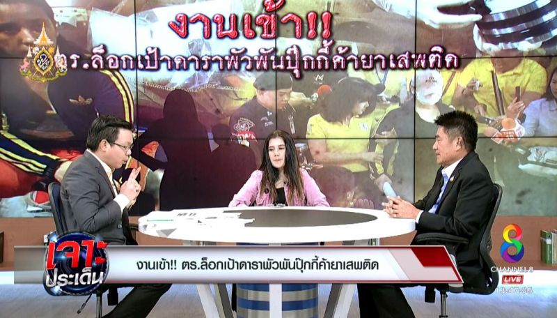 กรณีของ ปุ๊กกี้ ปริศนา พรายแสดง อดีตนักร้องชื่อดังในยุค 90 ที่ถูกตำรวจขยายผลการจับกุมพร้อมกับสามี หลังจากที่ตำรวจนั้นจับกุมชาวไต้หวัน ทั้งเกี่ยวข้องกับการขายยาเสพติดและผลิตยาเสพติด โดยเฉพาะยาเค แต่ประเด็นที่น่าสนใจคืตอนนี้มีการขยายผลและมีการระบุว่ามีบุคคลในวงการบันเทิงเกี่ยวข้องด้วย เช่นการติดต่อพูดคุยทางโทรศัพท์ และการโอนเงินเข้าบัญชีปุ๊กกี้ ปริศนา วันนี้รายการ เจาะประเด็น ทาง ช่อง 8 โดยมี ต่วย-ภคพงศ์ อุดมกัลยารักษ์ เป็ได้ร่วมพูดคุยกับ พล.ต.ต.วิชัย สังข์ประไพ อดีตรองผู้บัญชาการตำรวจนครบาล หรือผู้การแต้ม ได้ชื่อว่ามือปราบหูดำ และ นางวิภากร ศุขพิมาย หรือ กานต์ ที่เธอโพสต์เฟสบุ๊กให้กำลังใจปุ๊กกี้และมีกระแสตีกลับ