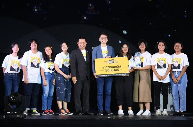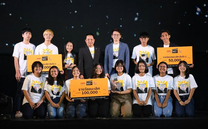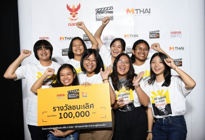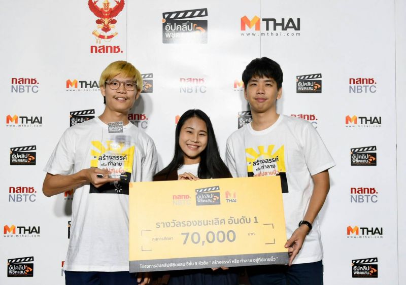 คุณวรพงษ์ นิภากรพันธ์ ผู้อำนวยการสำนักสื่อสารองค์กร สำนักงาน กสทช. และ คุณปฐมพงศ์ สิรชัยรัตน์ ประธานเจ้าหน้าที่ปฏิบัติการ บริษัท โมโน เทคโนโลยี จำกัด (มหาชน) ร่วมกันประกาศผลและมอบรางวัล โครงการ “อัปคลิปพิชิตแสน ซีซั่น 5” โดยมี คุณกัญญภัทร สุขสมาน ผู้ช่วยผู้อำนวยการกลุ่มธุรกิจสื่อสิ่งพิมพ์และอินเทอร์เน็ต บริษัท โมโน เทคโนโลยี จำกัด (มหาชน), คุณนันทพันธ์ แสงไชย ผู้ช่วยผู้อำนวยการ สถานีโทรทัศน์ช่อง MONO29 (โมโนทเวนตี้ไนน์) และคณะกรรมการ เสือ-ยรรยง คุรุอังกูร, อู๋-วีรยุทธ ล้อทองพานิชย์, เสือ-พิชย จรัสบุญประชา ร่วมแสดงความยินดีกับทีมชนะเลิศที่คว้าโล่ประกาศเกียรติยศ และเงินรางวัลแก่ ทีม HOT MONEY นักเรียนจากโรงเรียนสตรีวิทยา กับผลงานเรื่อง “#แมรี่โรส” และทีมผู้ชนะเลิศในลำดับอื่นๆ ณ โมโน สตูดิโอ สเตจ1 สนามจีเอสบีสเตเดียม29 ถนนชัยพฤกษ์