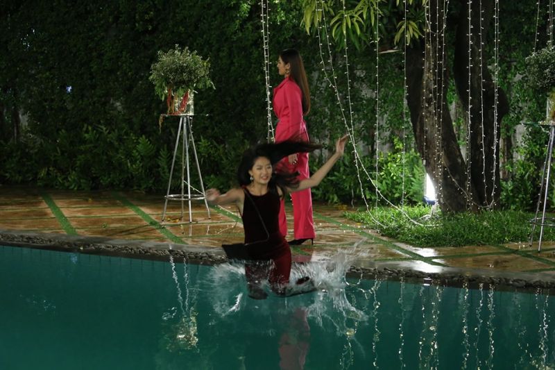 เห็นในฉากตอนที่ตกน้ำฉากนี้สาว “กิ๊ฟ” จัดเต็มเล่นได้อย่างเต็มที่ ตกน้ำจริง ดำน้ำจริง ไม่มีสแตนอิน โดยก่อนถ่ายทำ ผู้กับกับอย่างโอ๋-คฑาเทพได้มีซักซ้อมคิวกับ กิ๊ฟ เป็นอย่างดี โดยมีการบล็อกกิ้ง ซ้อมให้ กิ๊ฟ เดินมาที่บริเวณริมสระน้ำในงานเลี้ยง แล้วให้ นก-อุษณีย์ มาชนจนตกน้ำตามจุดที่กำหนดไว้แต่กิ๊ฟเองก่อนถ่ายทำก็แอบร้องไห้ตอนก่อนตกน้ำ เพราะตอนเป็นเด็ก สาวกิ๊ฟมีปมฝังใจกับการตกน้ำ