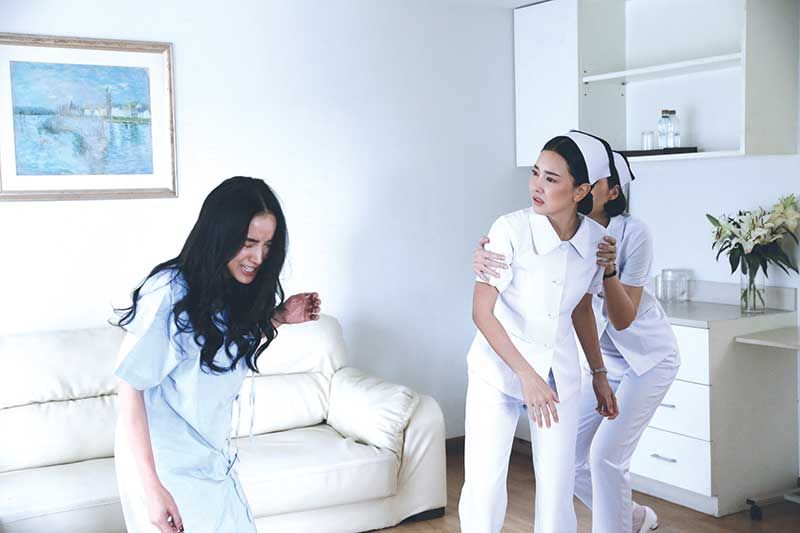 ผู้กำกับ โอ๋-กฤษฎา เตชะนิโลบล ยกกองไปถ่ายทำกันที่โรงพยาบาลจักษุพระราม 3 แม้จะเข้าฉากปะทะกันมาจนคุ้นเคยกันดีแล้ว แต่นุ่นกับแพทก็ขอซักซ้อมการตบการหลบให้คล่องแคล่วกันก่อนเพื่อความปลอดภัยจะได้ไม่พลาดตอนถ่ายจริง ซึ่งทั้งคู่ก็ปรึกษานัดแนะการตบตีดีไซน์การแสดงอย่างสนุกสนาน พอซ้อมไปสักพักจนแม่นยำคิวกันแล้ว ผู้กำกับก็เริ่มถ่ายจริงโดยฉากนี้นุ่นก็มาในชุดยูนิฟอร์มของนางพยาบาลกับลุคสาวหวานแสนเรียบร้อย เดินเข้ามาหาแพทที่เตียงด้วยความเป็นห่วง แต่ปรากฏว่าแพทไม่อยู่ที่เตียง นุ่นตกใจมากเรียกเม้าท์ซี่ให้ตามหาแพทรอบๆ ห้อง แล้วจู่ๆ แพท ที่อยู่ในชุดคนไข้ หน้าตาอิดโรย ก็ค่อยๆ เดินออกมาจากห้องน้ำ พอเจอนุ่นปุ๊บ แพทเลยแกล้งพูดประชดประชันพร้อมจะทำร้ายตัวเองเพื่อเอาเด็กออกให้ได้ซึ่งนุ่นทนฟังไม่ได้พุ่งตบหน้าแพท เรียกสติ เม้าท์ซี่พยายามห้ามนุ่น แต่แพทก็ยังจะทำร้ายตัวเองไม่หยุดยืนยันจะเอาเด็กออก ทั้งคู่ยื้อกันไปมาต่อปากต่อคำกันอย่างเมามันส์ จนผู้กำกับสั่งคัท ติดตามกันได้ในละครเรื่อง “เกมรักเอาคืน” คืนนี้อังคารที่ 17 ธันวาคมนี้เวลา 20.10 น. ทางช่อง GMM25