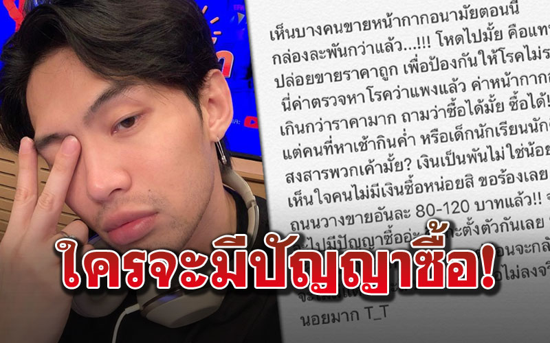 ล่าสุด ดีเจมะตูม ระบายความในใจผ่านอินสตาแกรม ถึงกรณีราคาหน้ากากอนามัยราคาสูง