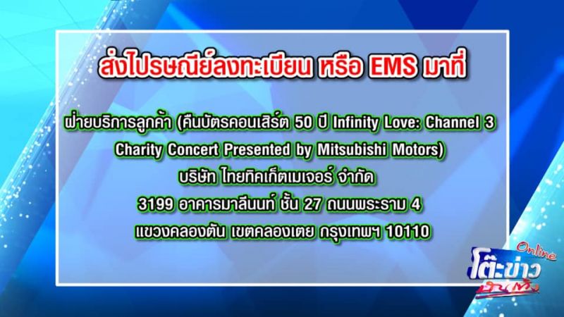 เนื่องด้วยสถานการณ์การแพร่ระบาดเพิ่มขึ้นทั่วโลกของเชื้อไวรัสโคโรน่าCOVID-19 ทางสถานีโทรทัศน์ไทยทีวีสีช่อง 3 จึงเล็งเห็นและคำนึกถึงความปลอดภัยของสุขภาพ ทั้งตัวผู้ชม แฟนๆ และศิลปินดารา ช่อง 3 รวมถึงทีมงานผู้ที่มีส่วนเกี่ยวข้อง จึงจำเป็นอย่างยิ่งที่ต้องขอประกาศเลื่อนคอนเสิร์ต 50 ปี Infinity Love: Channel 3 Charity Concert Presented by Mitsubishi Motorsเพื่อลดอัตราความเสี่ยงรวมถึงการแพร่ระบาดไวรัส COVID-19 โดยจะเลื่อน จากเดิม วันเสาร์ที่ 16 พฤษภาคม 2563 เป็น วันเสาร์ที่ 30 มกราคม 2564 ณ อิมแพคอารีน่า เมืองทองธานี
