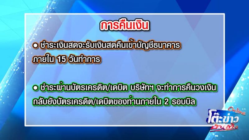 หากท่านชำระด้วยเงินสด กรุณาแจ้งชื่อ นามสกุล เลขที่บัญชี เพื่อทำการโอนเงินเข้าบัญชีของท่านภายใน 15 วัน หลังจากที่ได้รับบัตร และ หากท่านชำระด้วยบัตรเครดิต, บัตรเดบิต จะทำการยื่นเรื่องให้กับผู้ออกบัตรเครดิต ซึ่งปกติจะใช้เวลาคืนเงินเข้าบัตรเป็นระยะเวลา 2 รอบบิล
