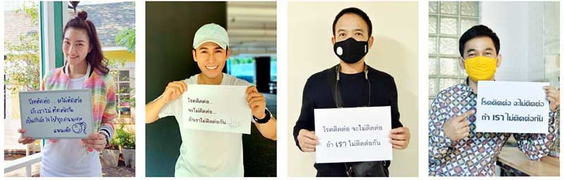 ขานรับโครงการของโรงพยาบาลศิริราช ส่งต่อระยะห่างระหว่างกัน ด้วยการทำ Challenge เขียนข้อความ “โรคติดต่อจะไม่ติดต่อ ถ้าเราไม่ติดต่อกัน” ลงในกระดาษ แล้วโพสต์ภาพ เพื่อเป็นการรณรงค์และยับยั้งการแพร่ระบาดของเชื้อไวรัสโควิด-19 พร้อมใส่แฮชแท็ก #alonetogether #เลิกติดโรคไม่ต่อส่งไปให้คนที่คุณรักอีก 10 คน ให้เขาได้รู้ว่าคุณรักเขาแค่ไหน #siriraj #ศิริราช ด้วยการเว้นระยะห่างในการเข้าสังคม (Social distancing) และลดการติดต่อ ไม่ไปรวมกลุ่มกันในพื้นที่ที่มีคนมากๆหากจำเป็นต้องออกไปนอกบ้านให้ใส่หน้ากากอนามัยหรือหน้ากากผ้า กินร้อน ช้อนส่วนตัว ล้างมือบ่อยๆ เมื่อเราคนไทยร่วมด้วยช่วยกัน เชื่อตามคำแนะนำของบุคลากรทางการแพทย์ จำนวนของผู้ติดเชื้อก็จะลดลงแน่นอน