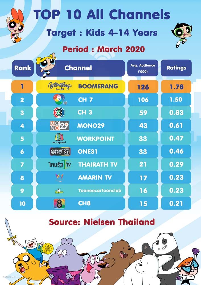“ตลอด 8 ปีที่ผ่านมาทางช่อง Boomerang 89 (บูมเมอแรง 89) เรตติ้งอันดับ 1 ของทีวีดาวเทียมและเคเบิลในประเทศไทยของ เอจีบี นีลเส็น มีเดีย รีเสิร์ชไม่เคยหยุดพัฒนา บริหารงานโดย พรพจน์ เลาหสุขเกษมผู้อำนวยการเครือข่าย ช่องบูมเมอแรงโดยที่ผ่านมามีกิจกรรมพิเศษมากมาย ปีนี้ยังมีความพิเศษให้สมกับช่อง เรตติ้ง อันดับ 1มาตลอด 8 ปี ส่งความสุขอย่างต่อเนื่อง เพื่อครองใจน้องๆ หนูๆด้วยการขนการ์ตูนจาก Warnerbros และ Cartoon Network อีกเพียบ ติดตามรายละเอียดเพิ่มเติมได้ที่ https://www.facebook.com/BoomerangThailand นอกจากนี้ยังมีกิจกรรมสุดพิเศษ สำหรับครอบครัวและเยาวชน เพื่อให้ใช้เวลาว่างให้เป็นประโยชน์ที่จัด ทุกสิ้นปีแน่นอน Boomerang Fun Run เป็นกิจกรรมที่สนับสนุนให้ทุกคนในครอบครัวมีส่วนร่วมในการสร้างเสริมการออกกำลังกายไปพร้อมๆ กัน ก็รอให้ทุกคนได้มาร่วมสนุก