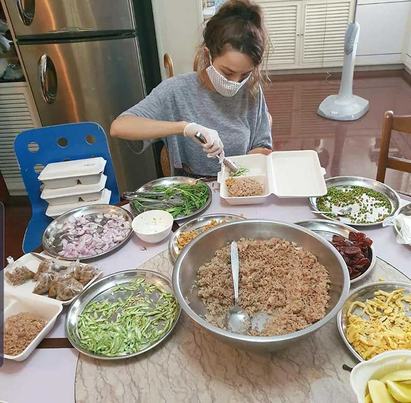 ซึ่งเจ้าตัวได้โพตส์ข้อความผ่านเฟซบุ๊ก ระบุว่า "วันนี้ทำข้าวคลุกกะปิส่งไปให้พี่พี่พยาบาล รพ.มหาราชนครราชสีมา น่าจะทันมื้อเย็นพอดี รถออกไปเมื่อตอนเที่ยงนะคะ ทานให้อร่อยค่ะ ไปนอนก่อนนนะคะ #ตลาดใจ #ไปคุกกัน #ครัวพี่มี่"