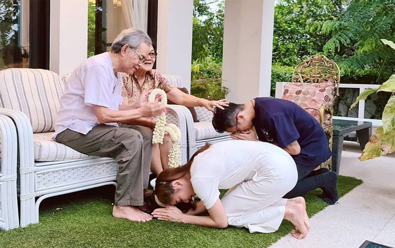 ภาพอบอุ่น! 'ก้อย-ตูน'รดน้ำดำหัว คุณพ่อคุณแม่ในวันสงกรานต์