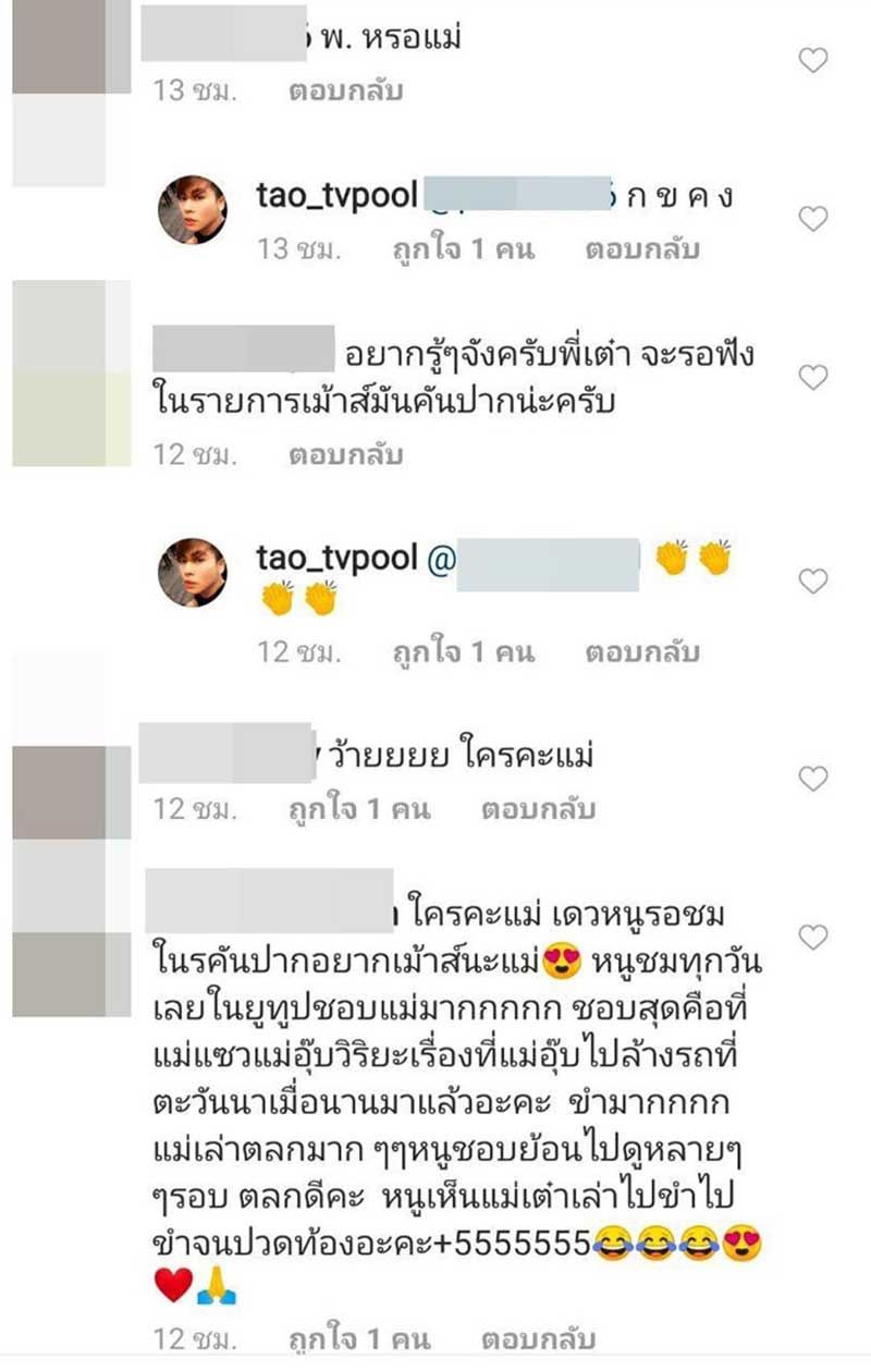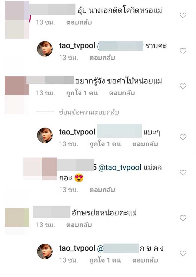 ทำเอาแฟนๆก็เข้ามาคอมเมนต์คาดเดากันไม่น้อย บ้างก็บอกว่า ขอคำใบ้เพิ่ม หรืออักษรย่อก็ได้ โดย เต๋า ทีวีพูล ยืนยันว่า ข่าวนี้คือการ "โดนรวบ" แต่เมื่อคนขออักษรย่อ เจ้าตัวกลับตอบกลับไปว่า ก. ข. ค. ง.