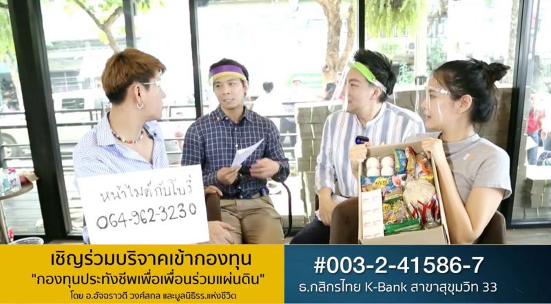 ทั้งสามสาวยังได้ชวนมาช่วยกันบริจาคสมทบทุน กองทุนโครงการ “กองทุนประทังชีพเพื่อเพื่อนร่วมแผ่นดิน” โดย มูลนิธิโรงเรียนแห่งชีวิต เพื่อให้ประชาชนที่เดือดร้อนสาหัสที่ยังมีอีกจำนวนมากได้รับความช่วยเหลือโดยเร็ว ทั้งนี้ได้มีการจัดทำกล่องยังชีพส่งให้พี่น้องชาวไทยผู้เดือดร้อนไปแล้ว 12,110 กล่อง รวมถึงได้โอนเงินฉุกเฉิน 500 บาทไปก่อนทันทีในรายที่เร่งด่วน โดยโอนเงินไปให้แล้วกว่า 2,000. ราย และยังมีผู้เดือดร้อนจากทั่วประเทศที่ยังรอรับกล่องยังชีพอีกกว่าแสนราย และมูลนิธิโรงเรียนแห่งชีวิต จะทำกล่องยังชีพให้กับผู้เดือดร้อนให้มากที่สุดจนกว่าจะหมดเงินบริจาค สำหรับท่านที่สนใจสามารถร่วมบริจาคได้ที่บัญชี มูลนิธิโรงเรียนแห่งชีวิตเลขที่บัญชี 003-2-41586-7 ธ.กสิกรไทย