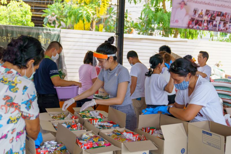 ซึ่งมีทีมงานจิตอาสากว่าร้อยชีวิต ผลัดเปลี่ยนหมุนเวียนตั้งใจผลิตกล่องยังชีพให้ทันส่งผู้ที่ขอรับความช่วยเหลือให้เร็วที่สุด เพราะจากวิกฤติโควิด16 ระบาด ทำให้พี่น้องชาวไทยอีกหลายล้านชีวิตไม่สามารถหารายได้มาจุนเจือตนเองและครอบครัวได้ งานนี้สาวโบวี่ ยังได้ชวนเพื่อนๆไลฟ์สด กับประเด็น "โควิดปลิดชีวิตพังยังไง" ซึ่งก็มีความลำบากจากสายทางบ้านมากมาย จนเจ้าตัวกลั้นน้ำตาแทบไม่อยู่